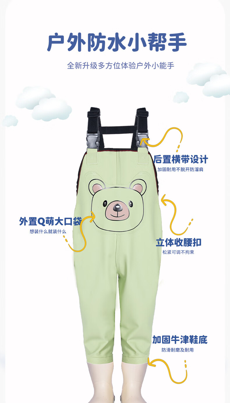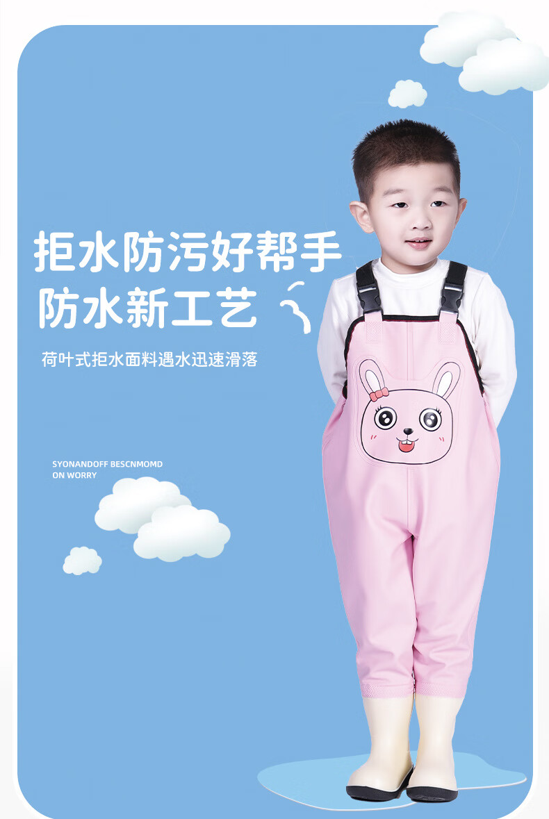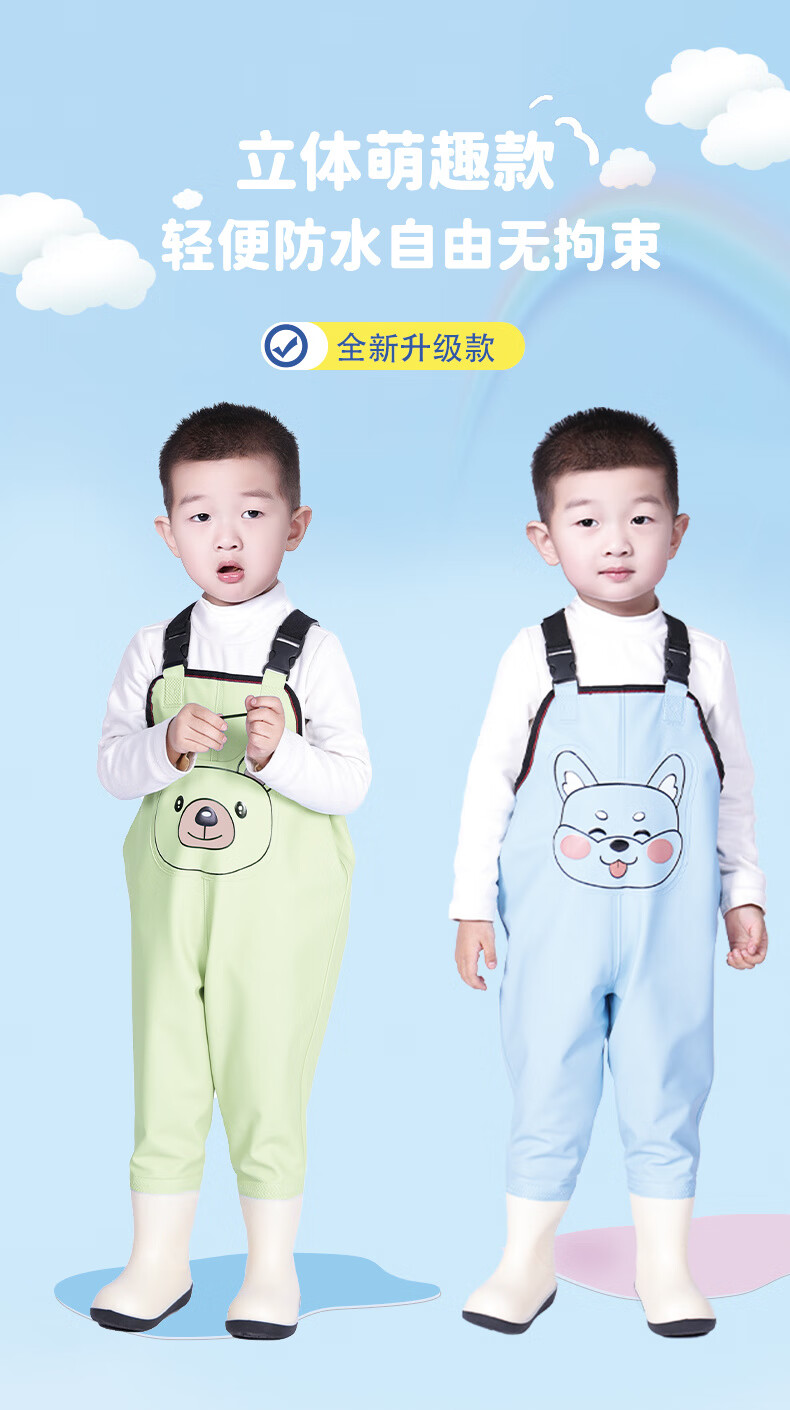 Shaquhe Children's One-piece Water Play Kindergarten Waterproof Clothes for Catch the Sea Children's Rain Shoes for Catching Fish Men's and Women's Rain Pants Beach Dog Blue-Children's Overalls with Pockets 27 Shoe Inner Length 17.5CM