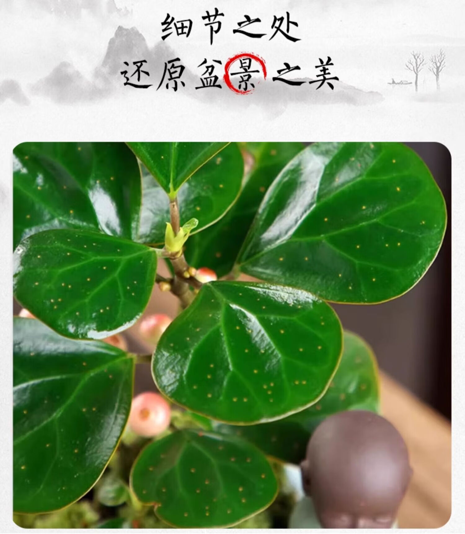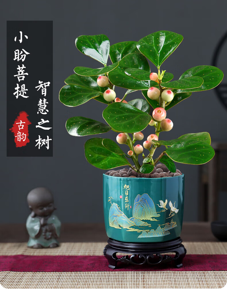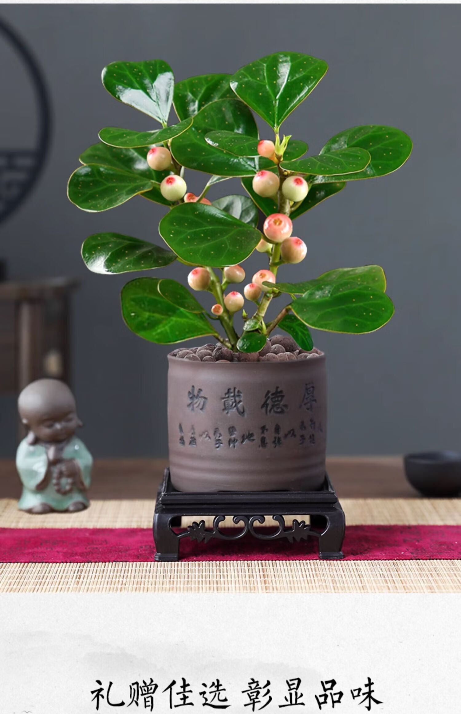 Bodhi Tree Potted Small Pan Bodhi Bonsai with Fruit Chinese Zen Desktop Decoration Indoor Creative Good Green Plant A Grade Multi-Fruit - Xiao Pan Bodhi (Lotus Purple Clay Pot + Bottom Support + Moss)