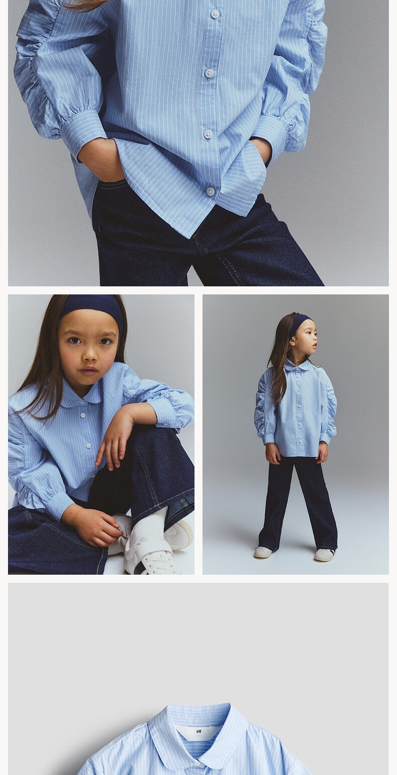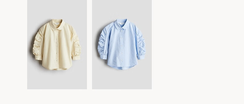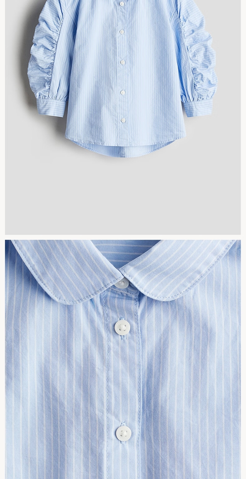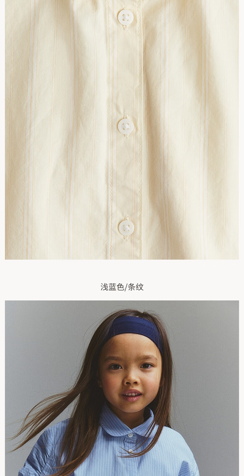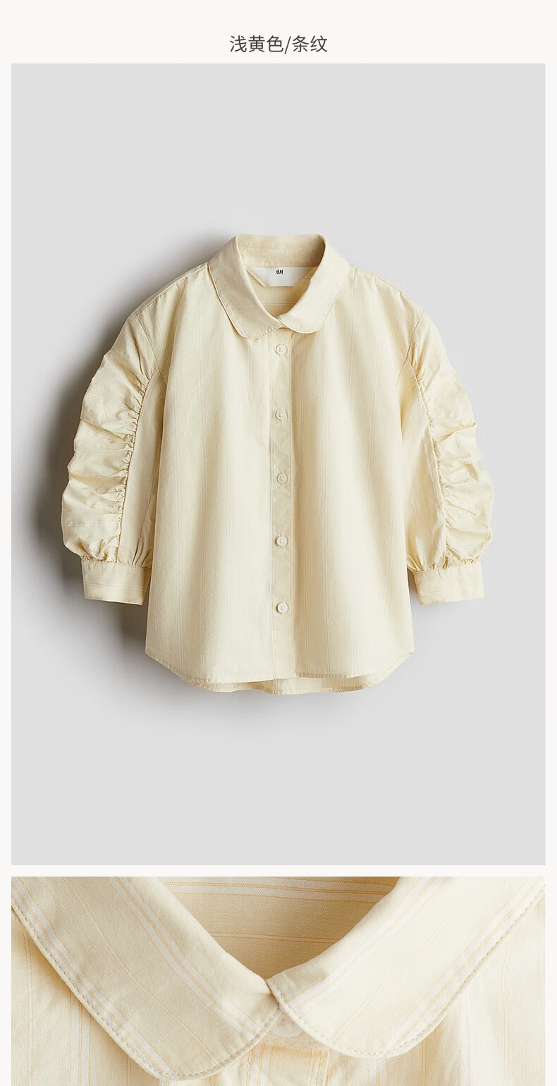 H&M Spring Children's Clothing Children's Girls Soft Striped Lantern Sleeve Cotton Shirt 1268343 Light Yellow/Striped 120 120/60 (5-6Y)