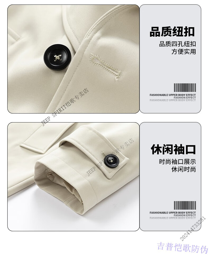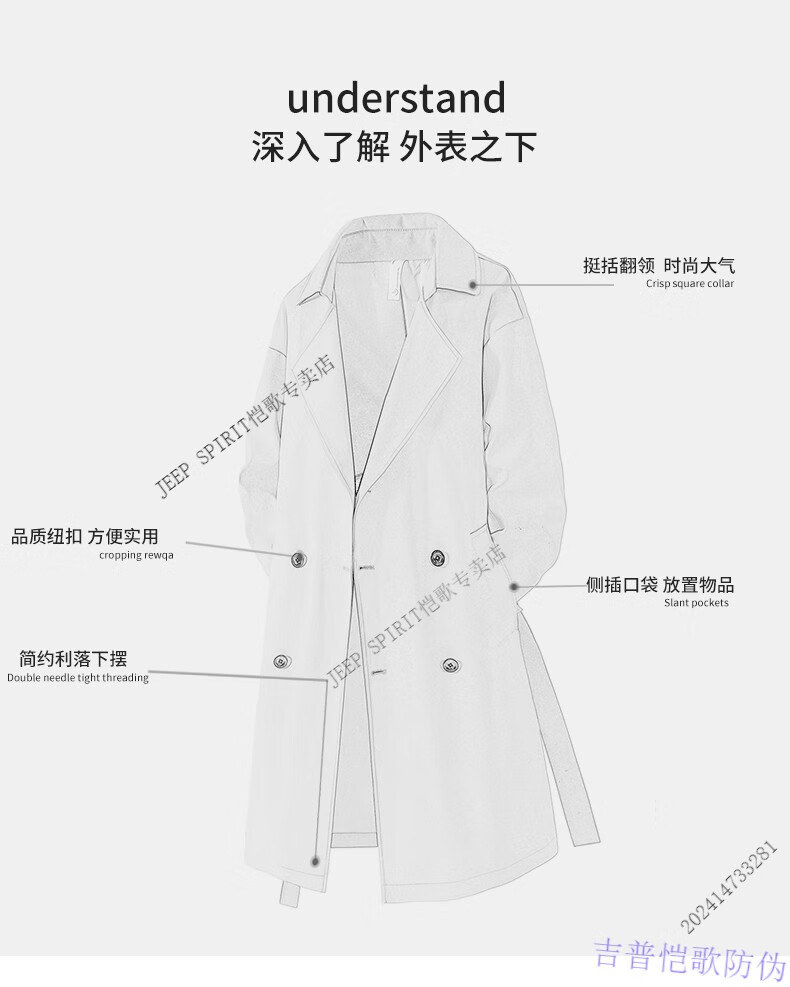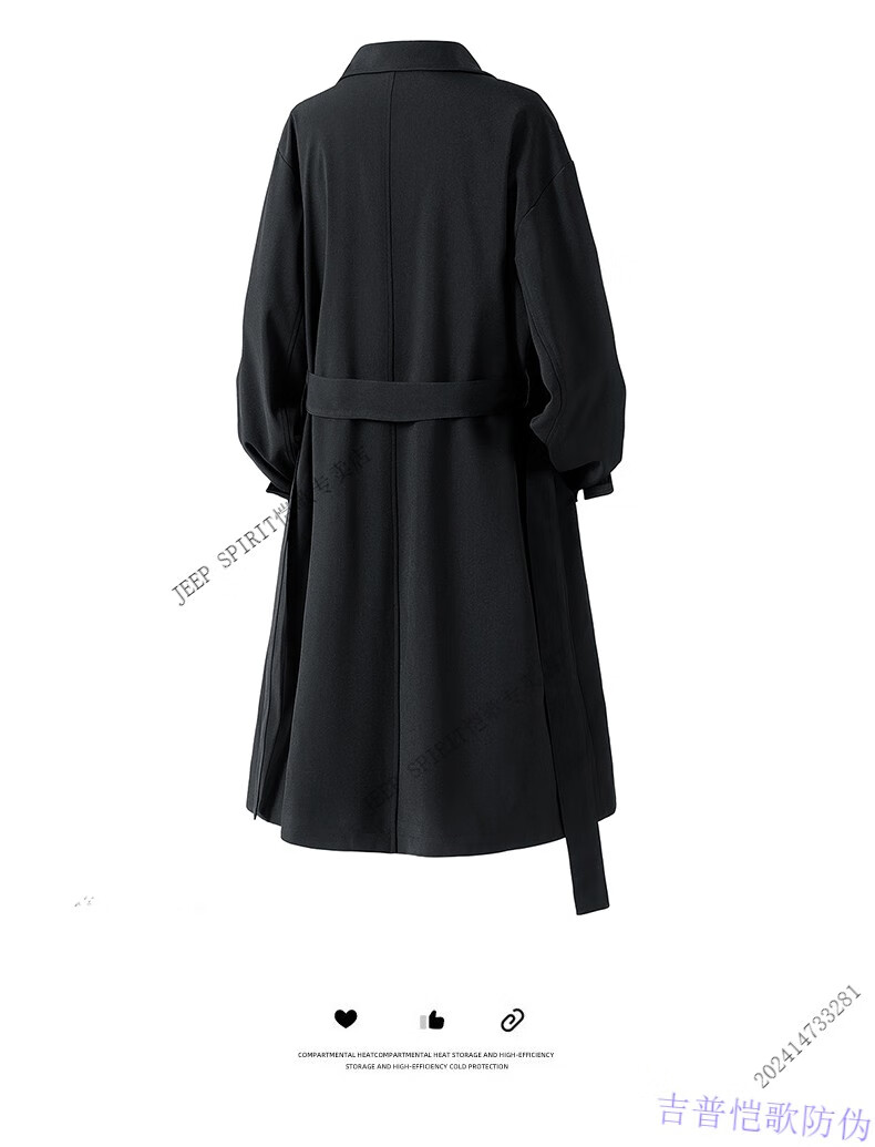 JEEP SPIRIT light luxury high-end German mid-length windbreaker men's British style casual over-the-knee coat jacket men's casual new product black 2XL recommended weight 160-180Jin Jin equals 0.5 kg