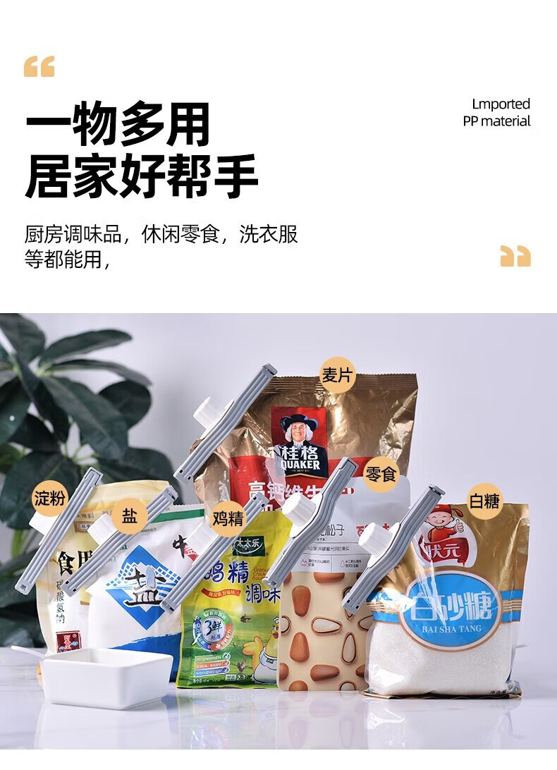 Wilkie sealing clip with mouth bag sealing clip kitchen storage collection clip multi-functional clip food sealing sealing outlet mouth food sealing clip gray white 10 pack