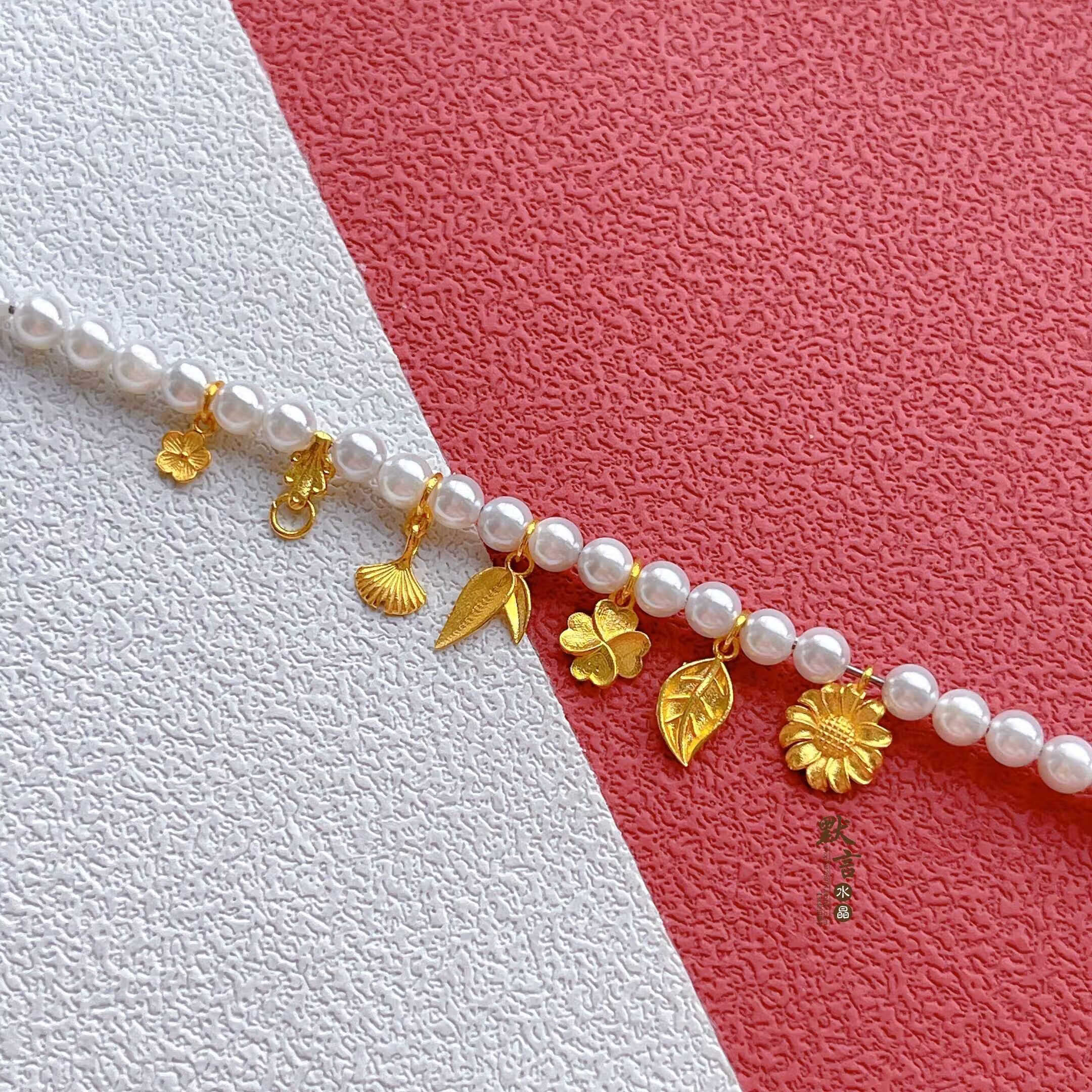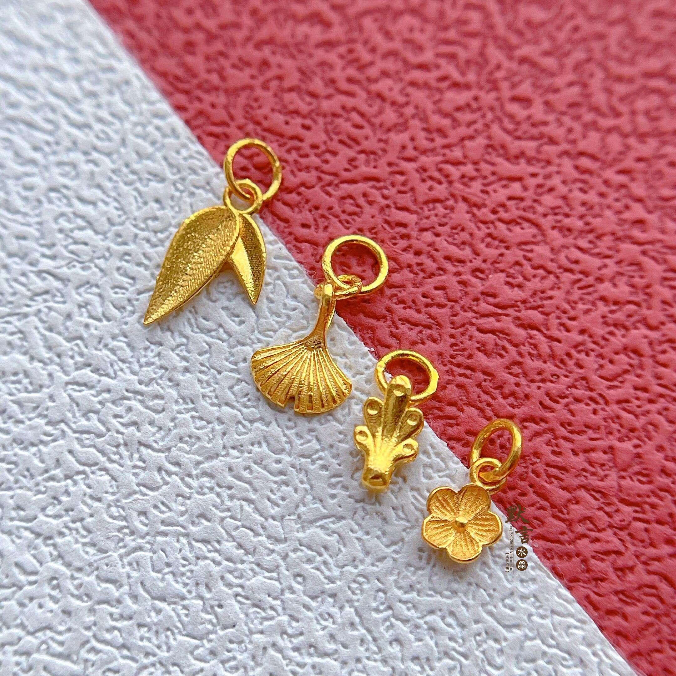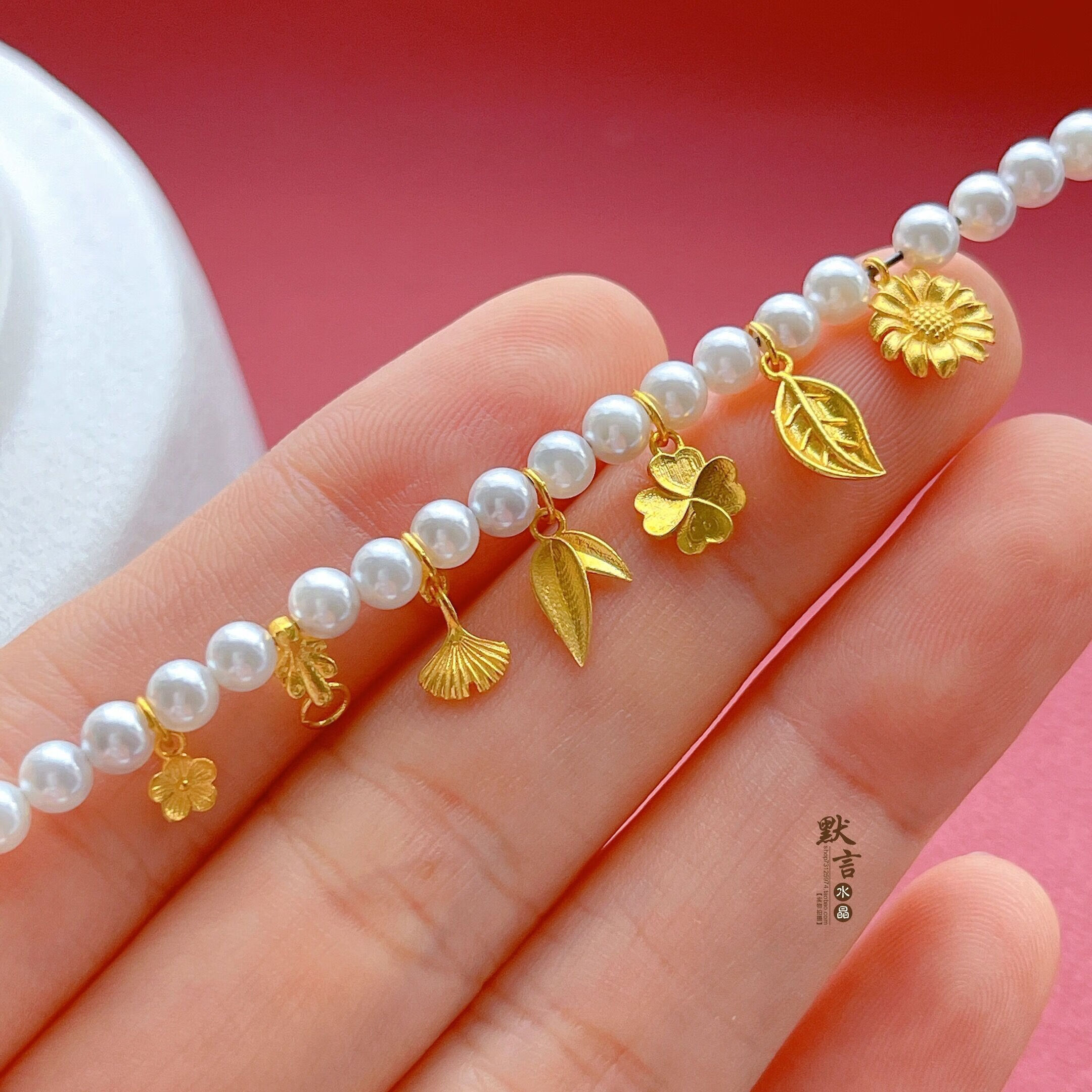 Shumo AU750 pure 18K gold accessories ancient gold sunflower pendant ginkgo leaf bamboo leaf pendant DIY string bracelet 18K-378 full body 18K gold five-petal flower