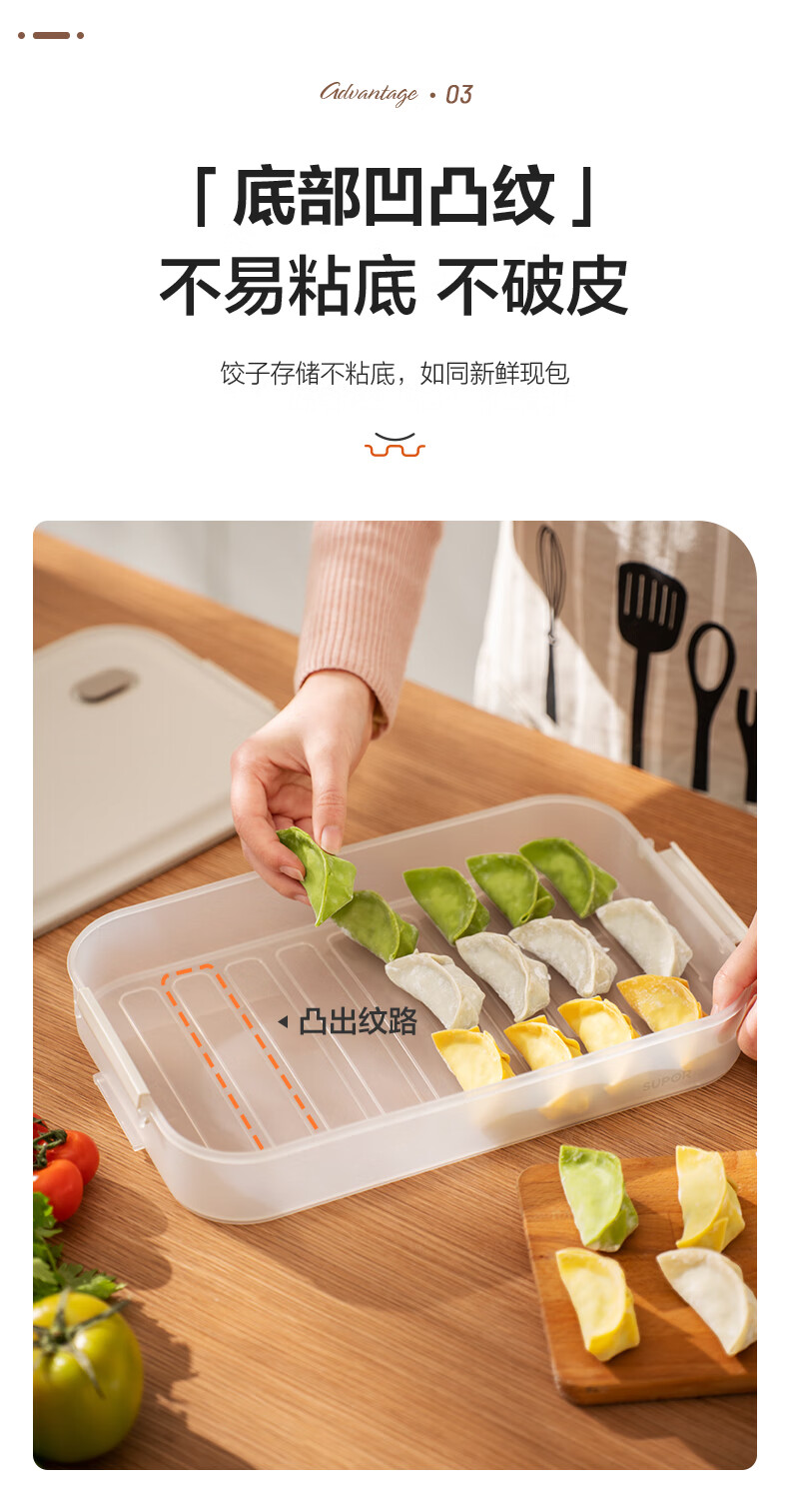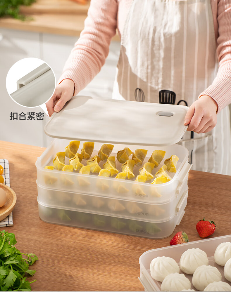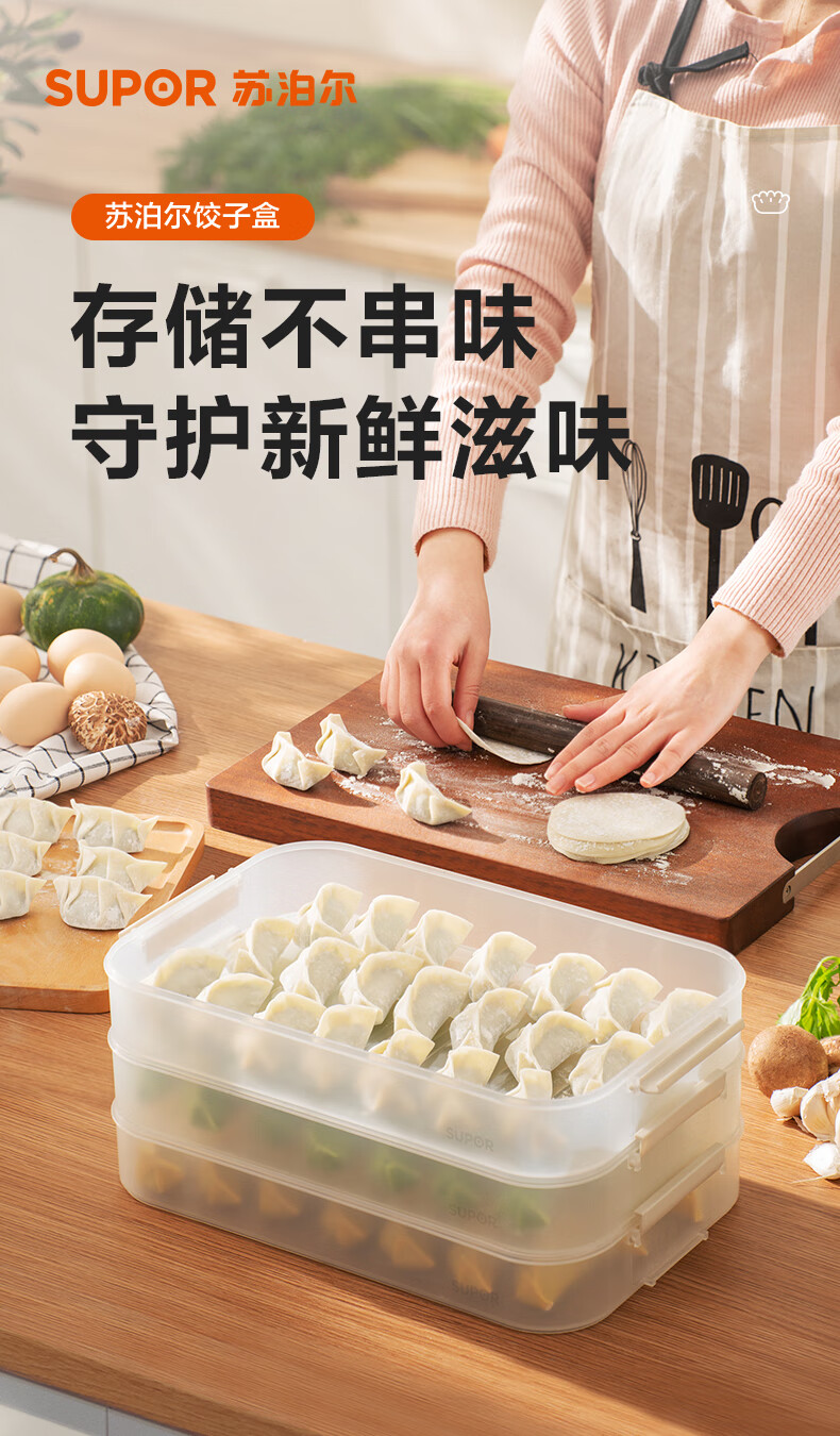 SUPOR food-grade plastic crisper refrigerator storage box multi-functional dumpling box sealed quick-frozen freezer box easy to store multi-functional dumpling box single-no cover