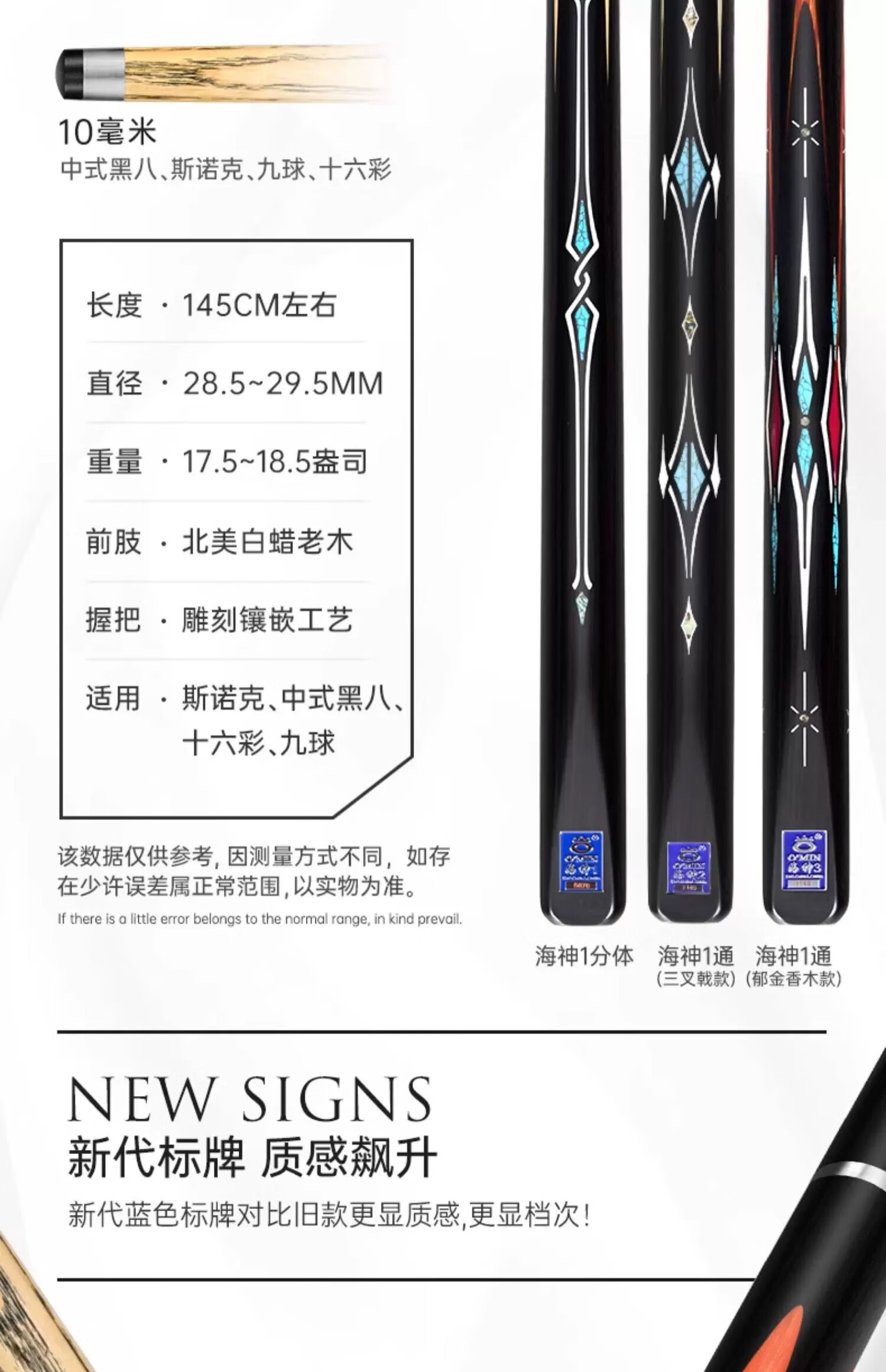 Mystery billiard cue small head Poseidon 1 Gunner Assassin Cobra split cue Chinese style black 8-in-8 table cue Poseidon 1 cue + exclusive box + Mengpi tip + 13-piece set