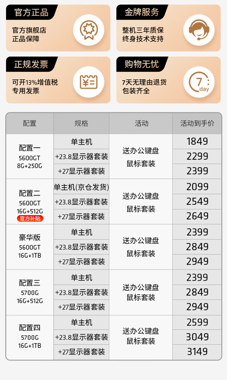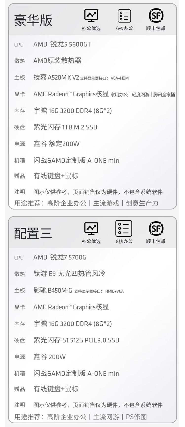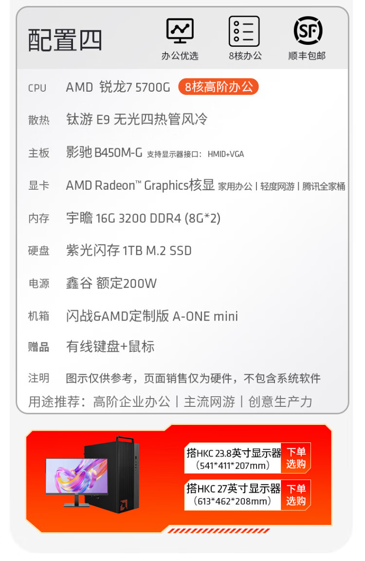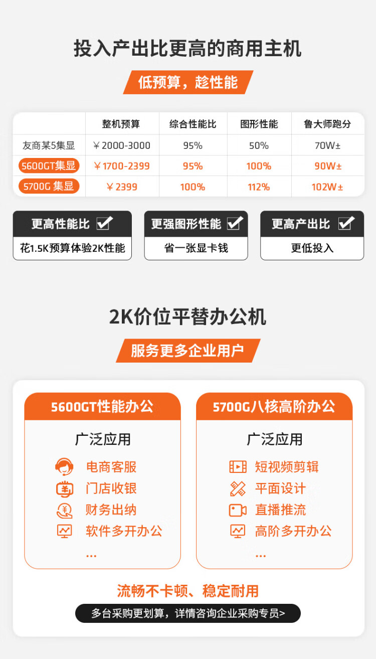 AMD Ryzen R5 5600GT commercial office home online class financial design desktop computer game console DIY assembly machine computer office suite configuration three 5700G eight-core + 16G + 512G host + 27-inch monitor
