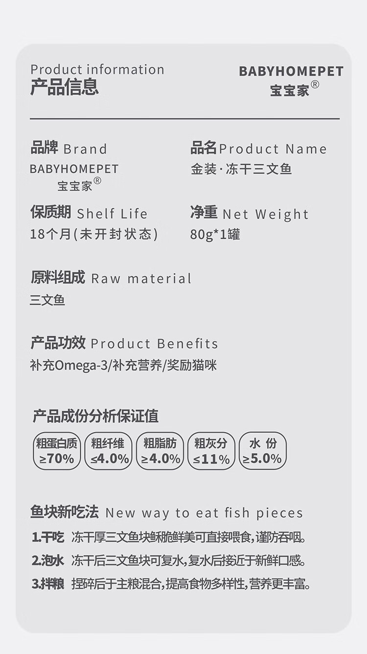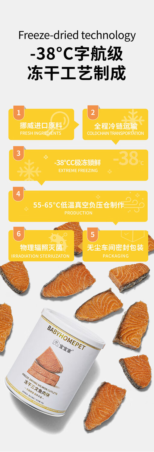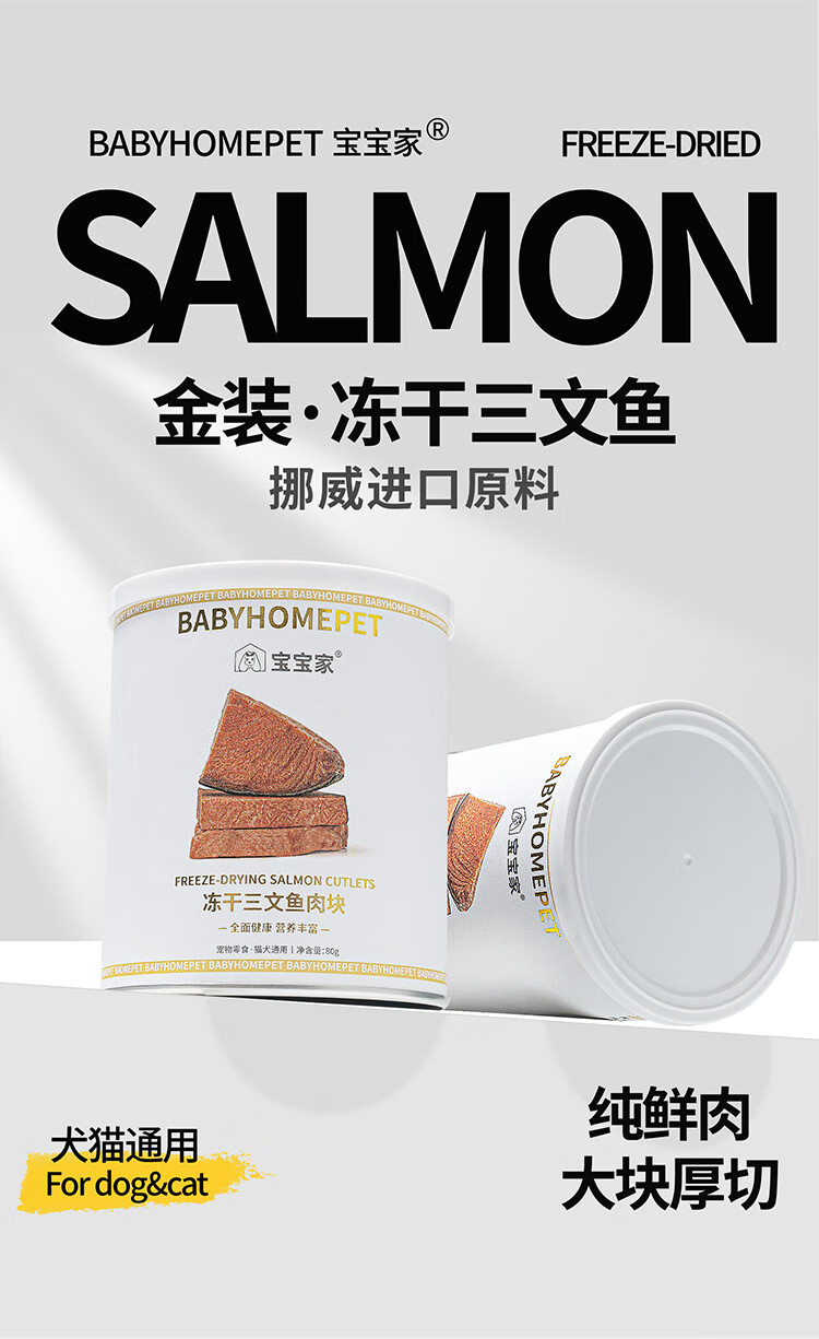Baobaojia Freeze-dried Cat Snacks Salmon Hair Beauty Skin Care Nutrition Fattening Hair Fish Oil Cat Pet Snacks Raw Materials Imported from Norway Raw Cut Freeze-dried Salmon