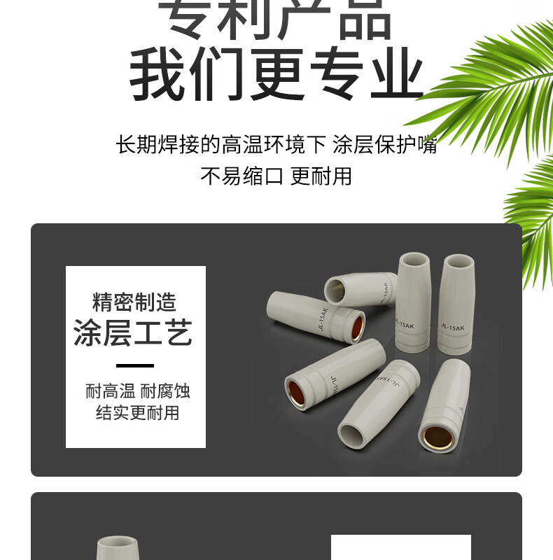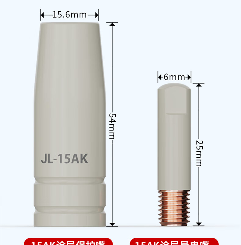 Maixinyi European-style 15AK coated protective nozzle, non-stick welding slag, conductive nozzle, gasless 14AK welding gun, household secondary welding machine 15AK-threaded coated protective sleeve 5 pieces