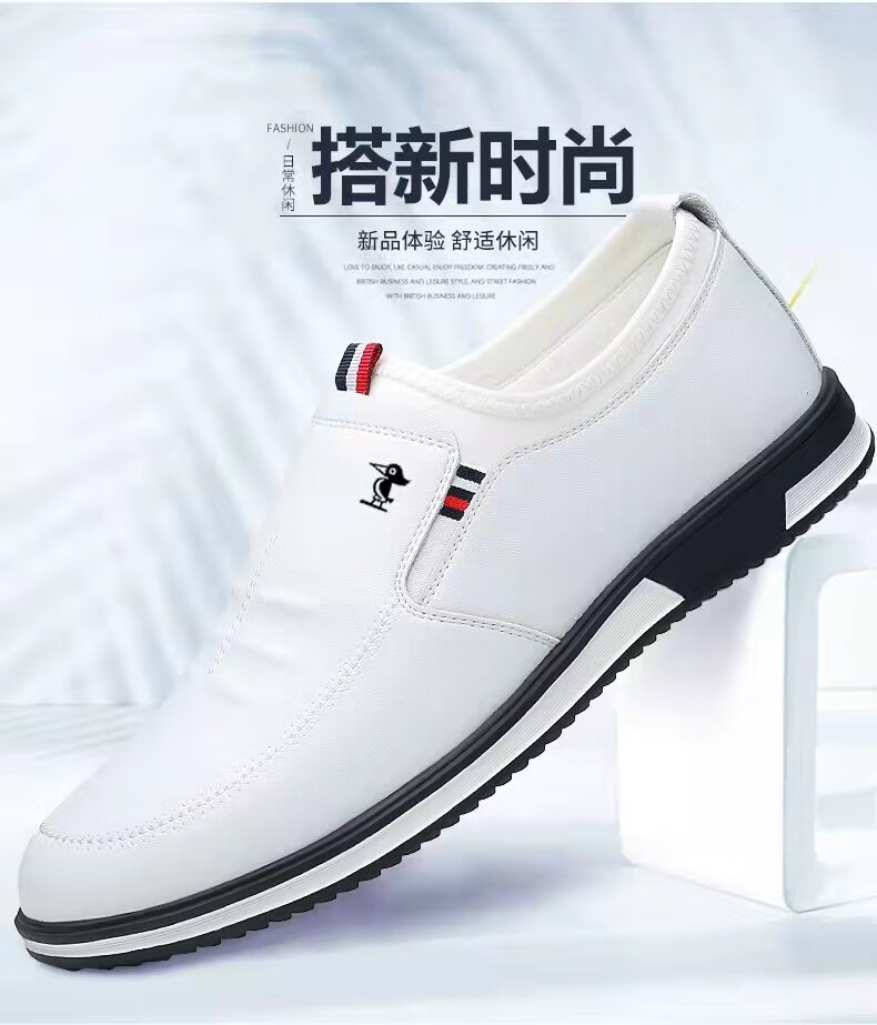 Star-Headed Woodpecker Men's Genuine Leather Breathable Business Casual Shoes 2025 Autumn New Fashion Versatile White Shoes Inner Heightening Leather Shoes for Men C2026 White 42