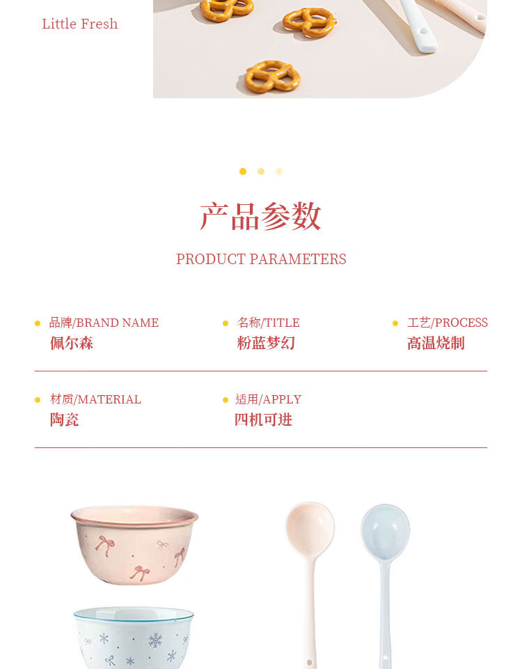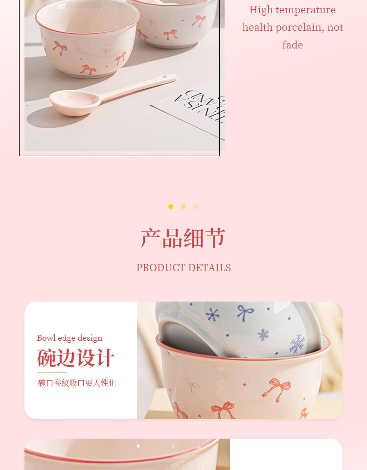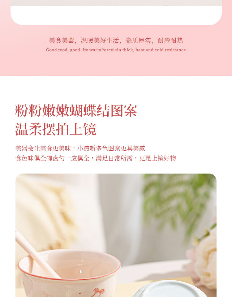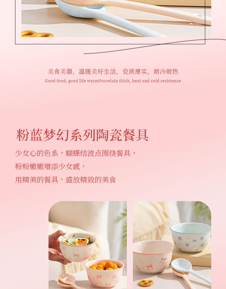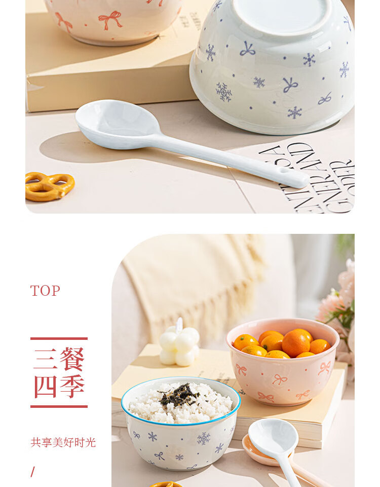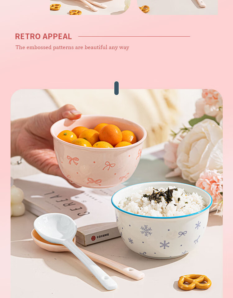 Everyday low price, new underglaze color ceramic bowl and tableware set, girlish ins style ceramic bowl and spoon, 99% people choose dreamy pink and blue two bowls and two spoons