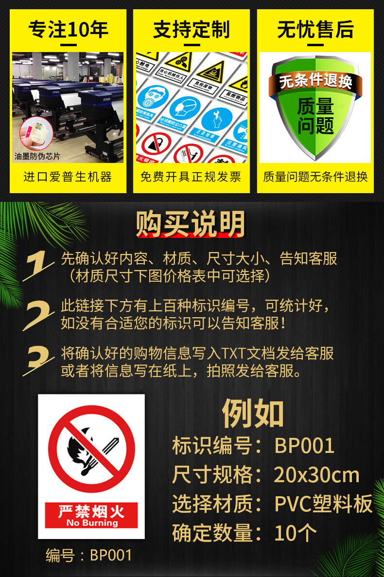 Signage warning warning fire sign sign construction site construction site production workshop factory warehouse no smoking reminder sign strictly prohibited fireworks wall sticker advertising custom PVC material customization any size content 30x40cm