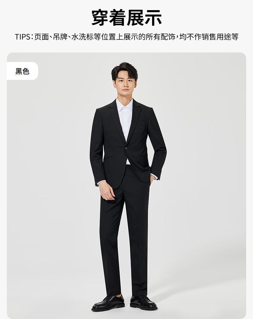 Lilang Shopping Mall Same Style Suit Men's One Button 2025 Spring Commuting Business Men's Suit Black (25CXF051SA) 180A