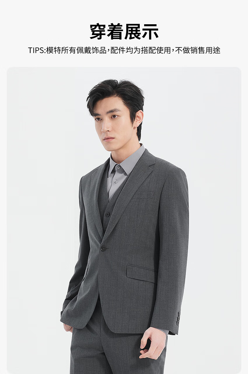 Lilang Shopping Mall Same Style Three-piece Suit Set Nine-Point Pants Version 2025 Spring Men's Formal Wear Gray and Black (25CXF071SA) 170A