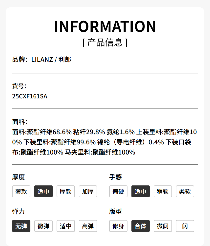 China (cm) 160-165/84-86 165-170 / 88-90 167-172 / 92-96 168-173 / 98-102 170-176 / 106-110
