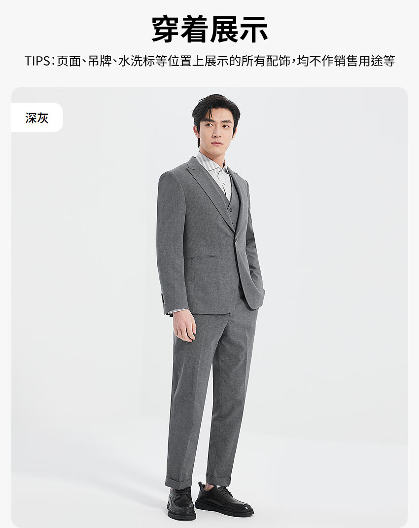 Lilang Shopping Mall Same Style Three-piece Suit Men's 2025 Spring Formal Suit Suit Peaked Collar Nine-Point Pants Version Dark Gray (25CXF161SA) 180A