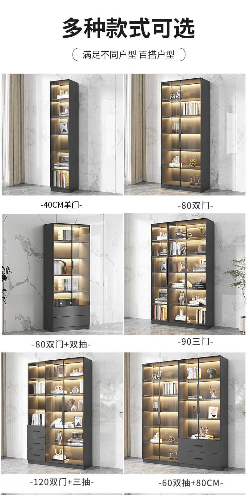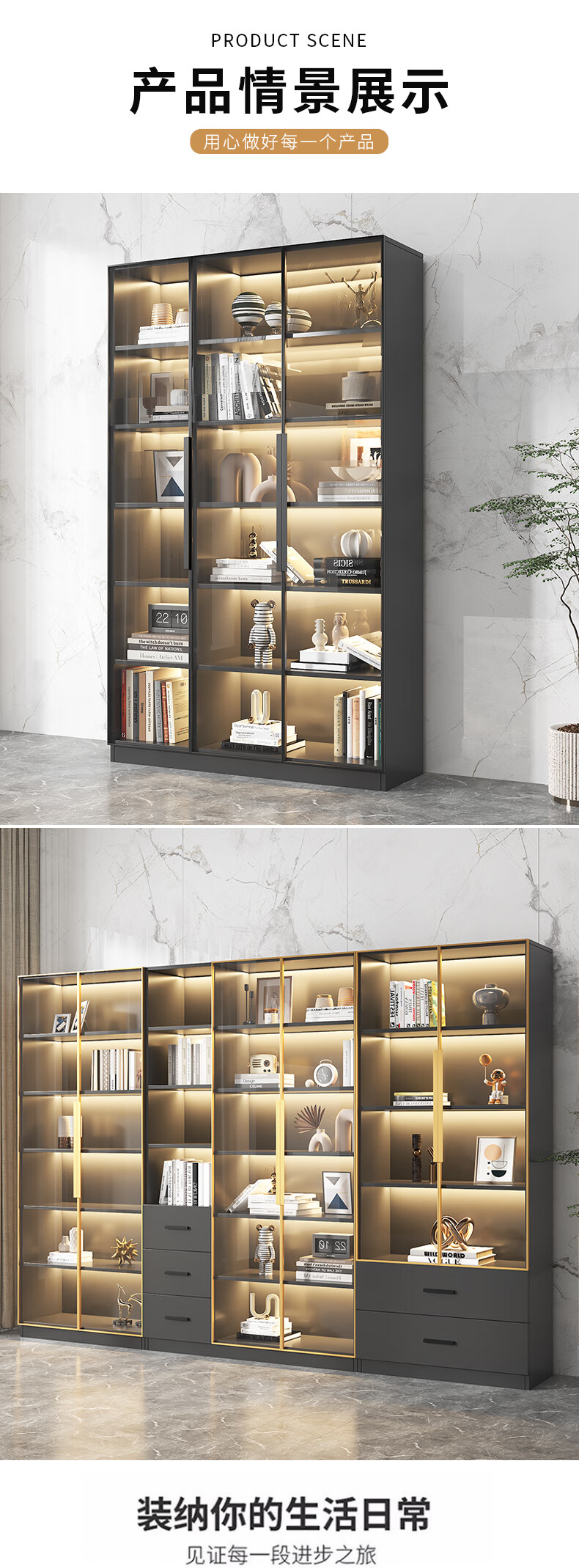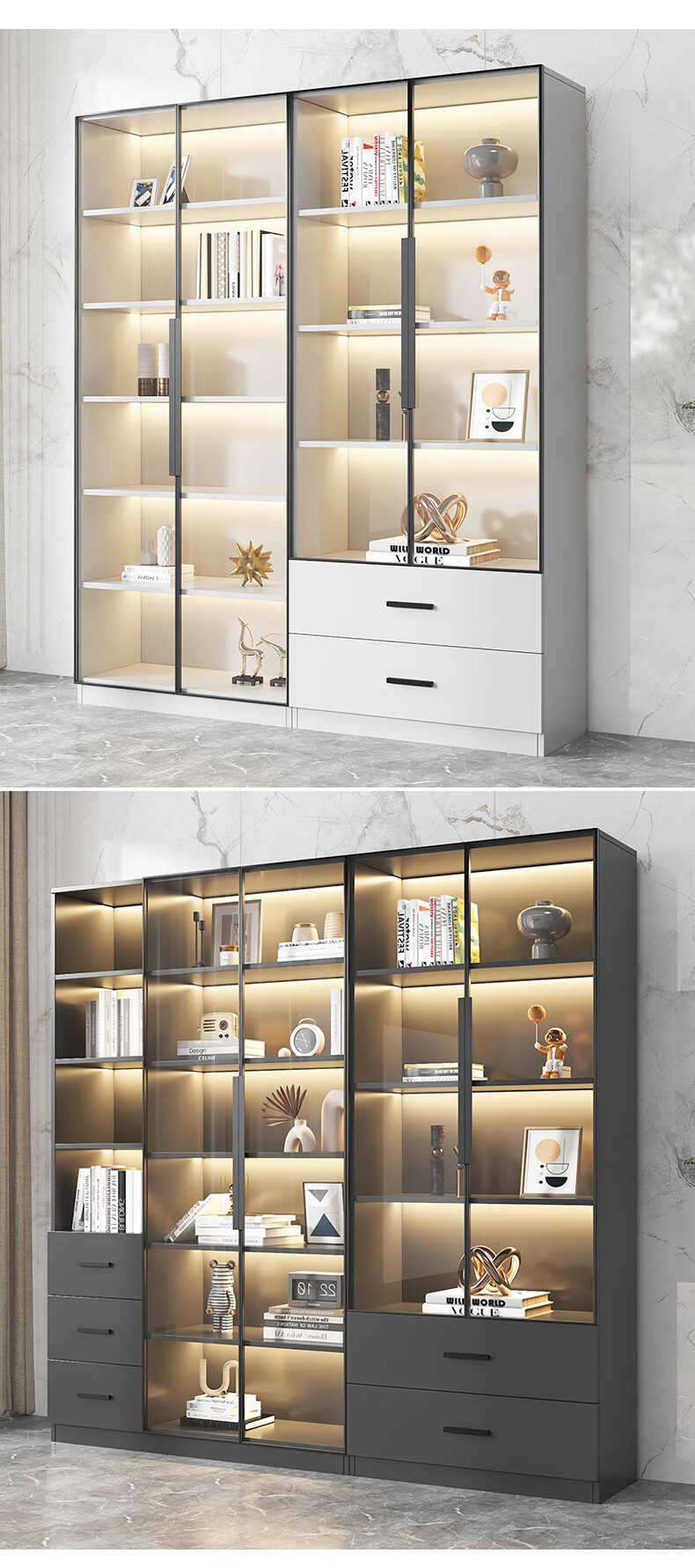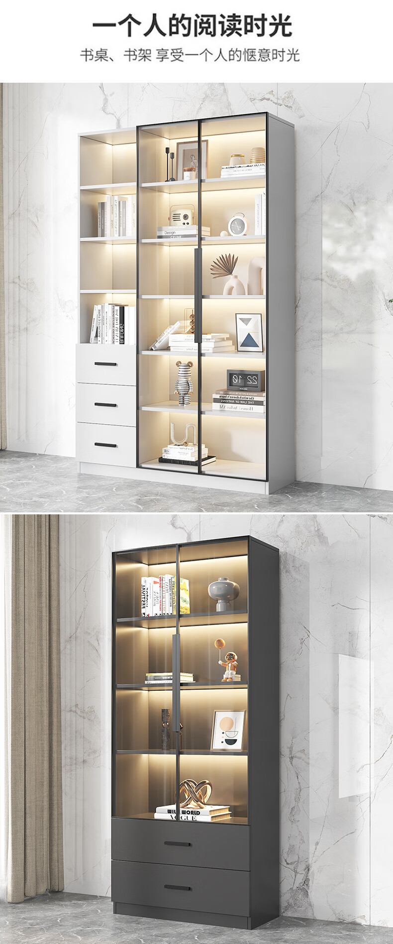 Chugong solid wood bookcase with glass door can be customized for home living room integrated wine cabinet hand-made display combination storage storage cabinet 40cm single door elegant white