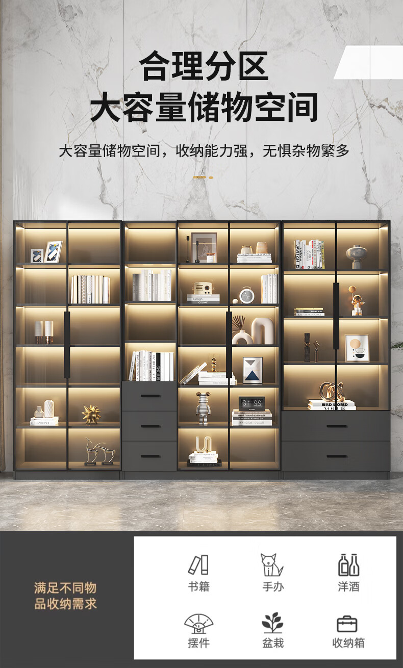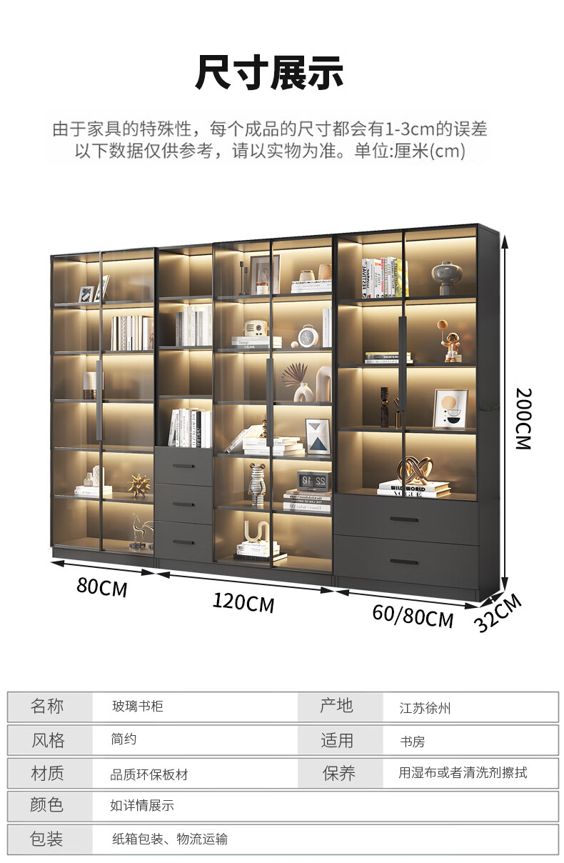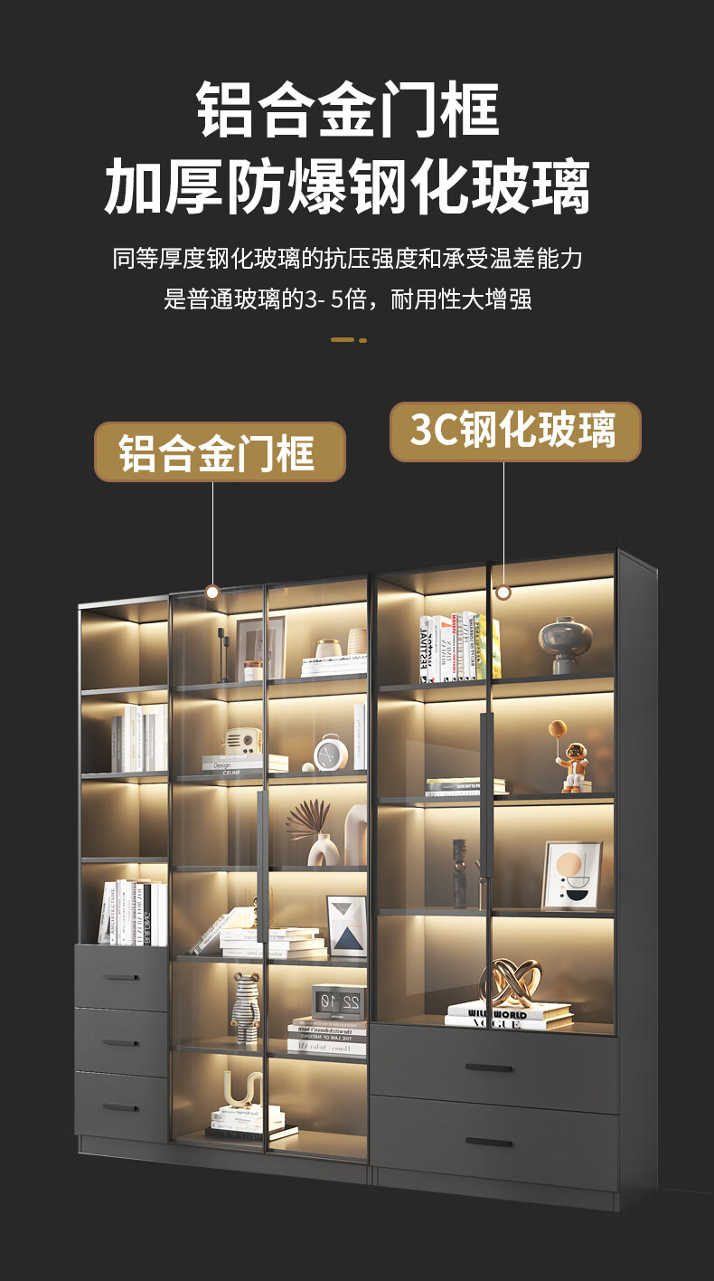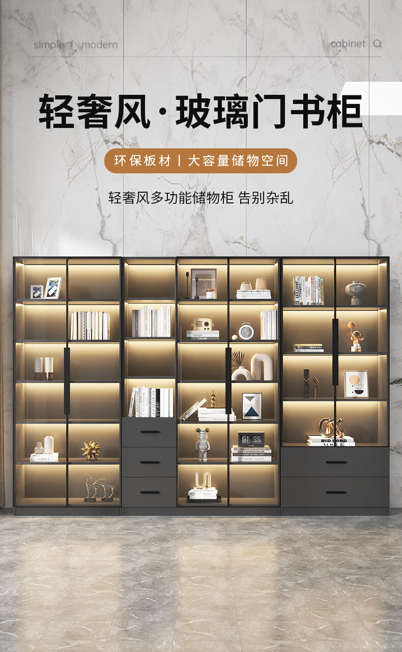 Chugong solid wood bookcase with glass door can be customized for home living room integrated wine cabinet hand-made display combination storage storage cabinet 40cm single door elegant white
