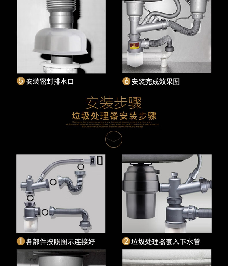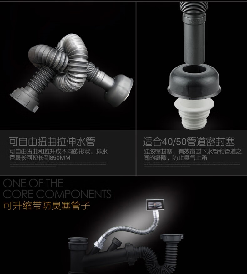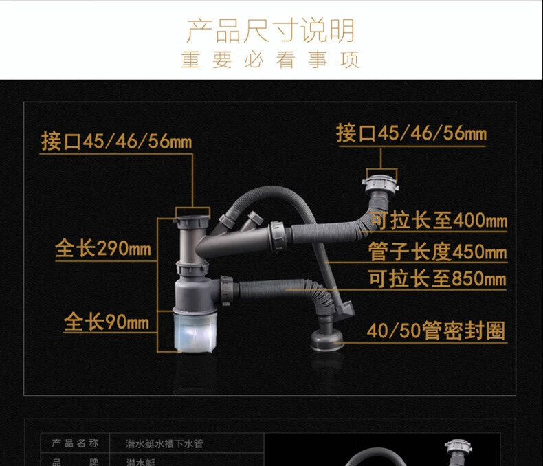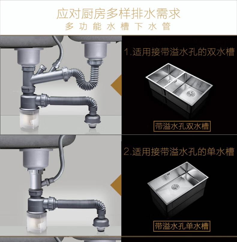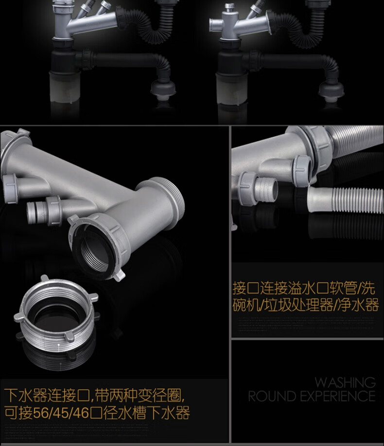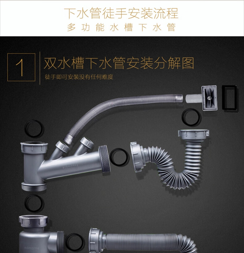 Submarine single and double sink sink, dish basin, kitchen food waste disposer crusher sewer pipe, connected to the sewer pipe of garbage disposal (single sink)