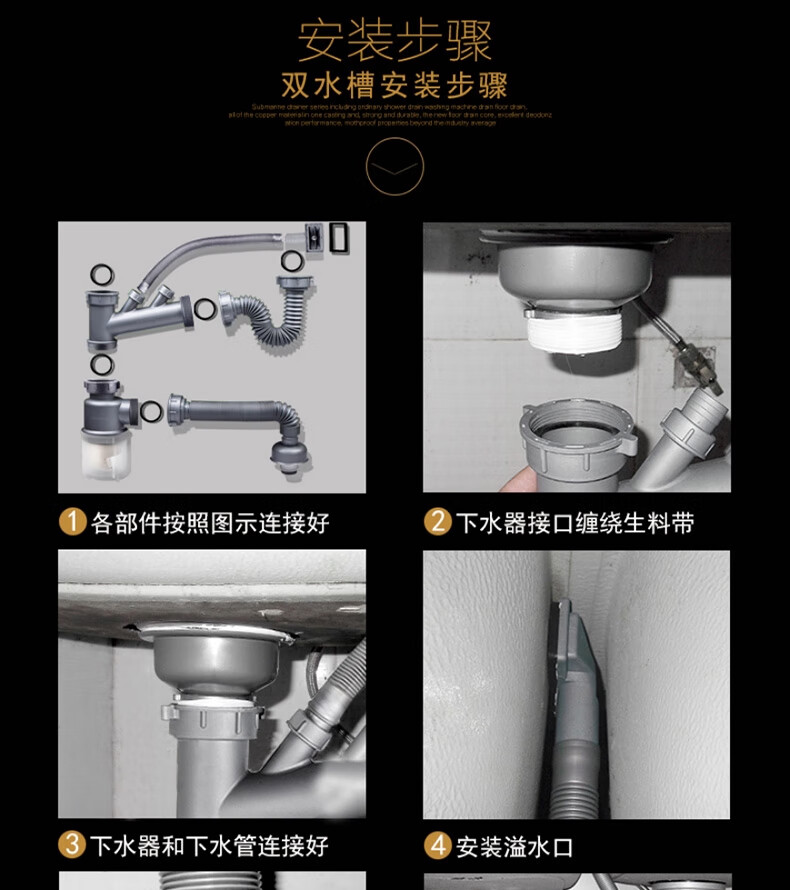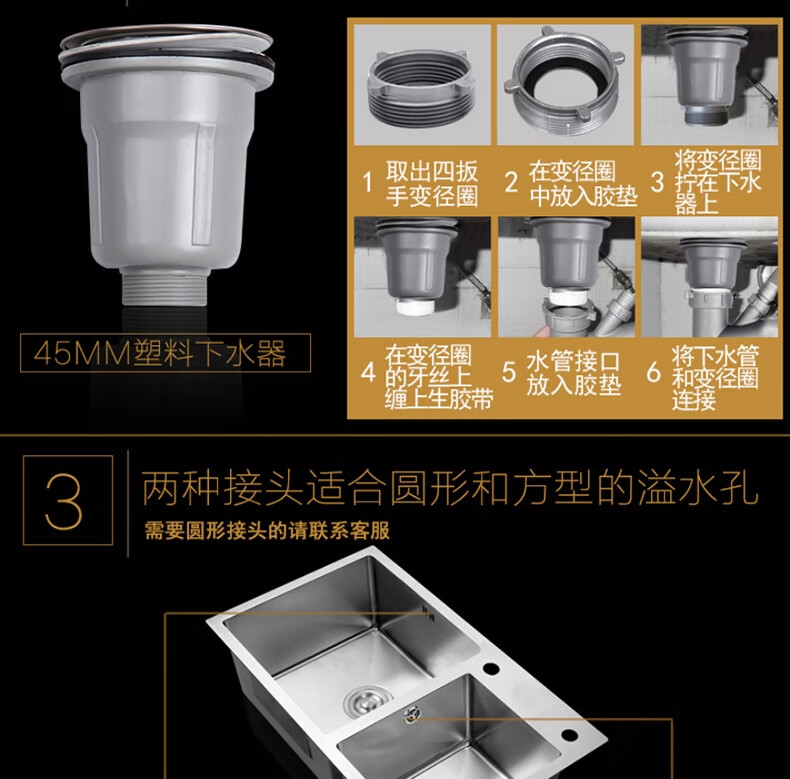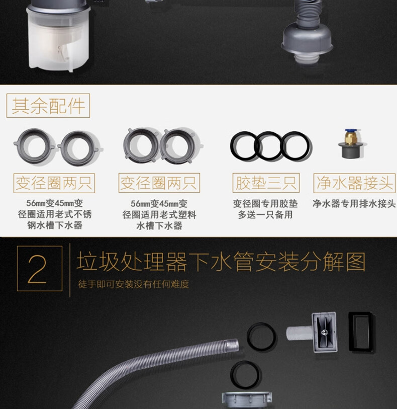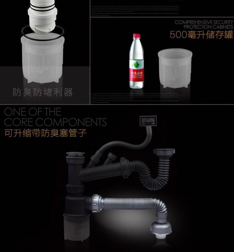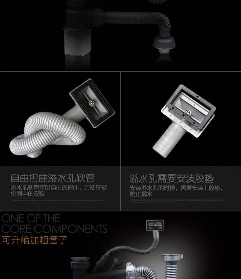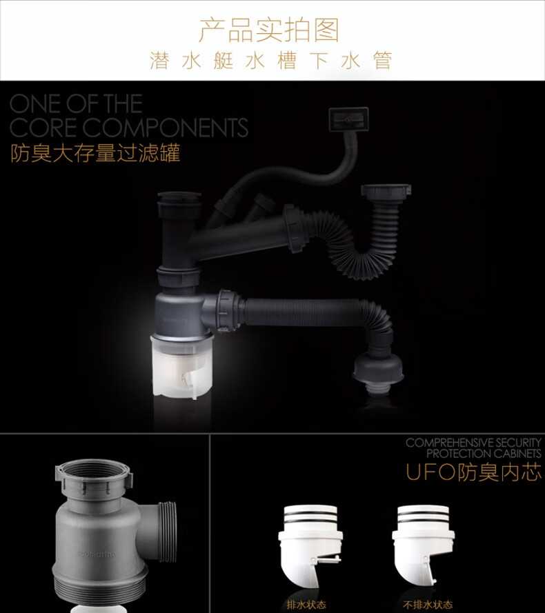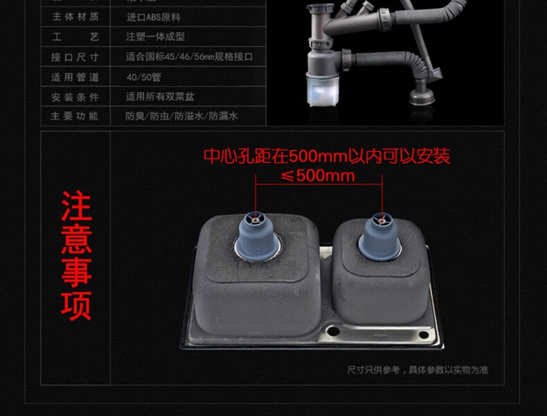 Submarine single and double sink sink, dish basin, kitchen food waste disposer crusher sewer pipe, connected to the sewer pipe of garbage disposal (single sink)