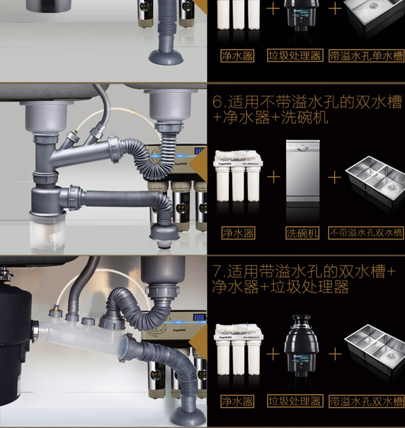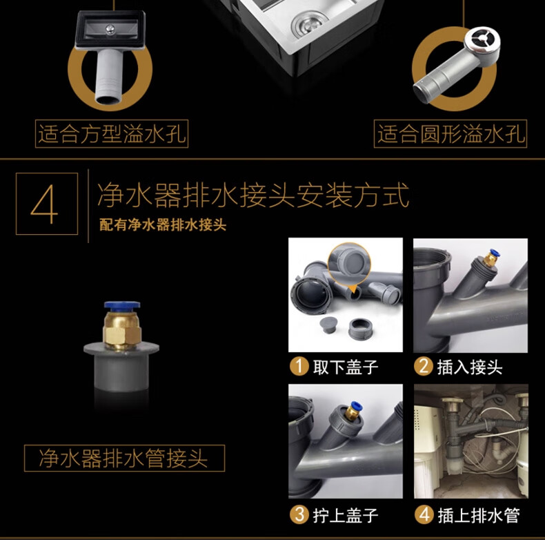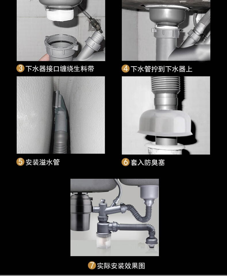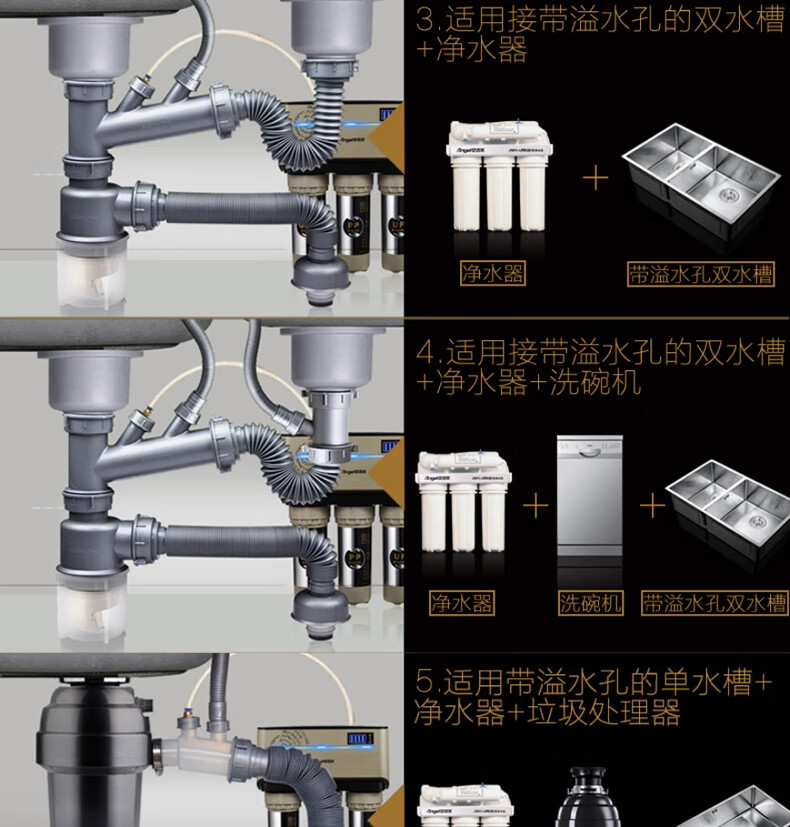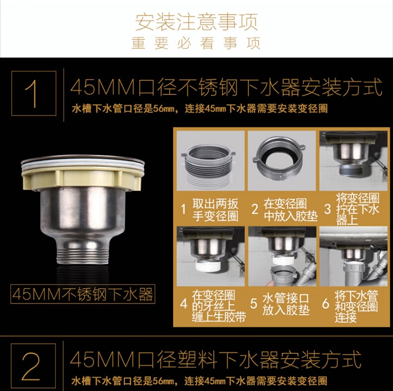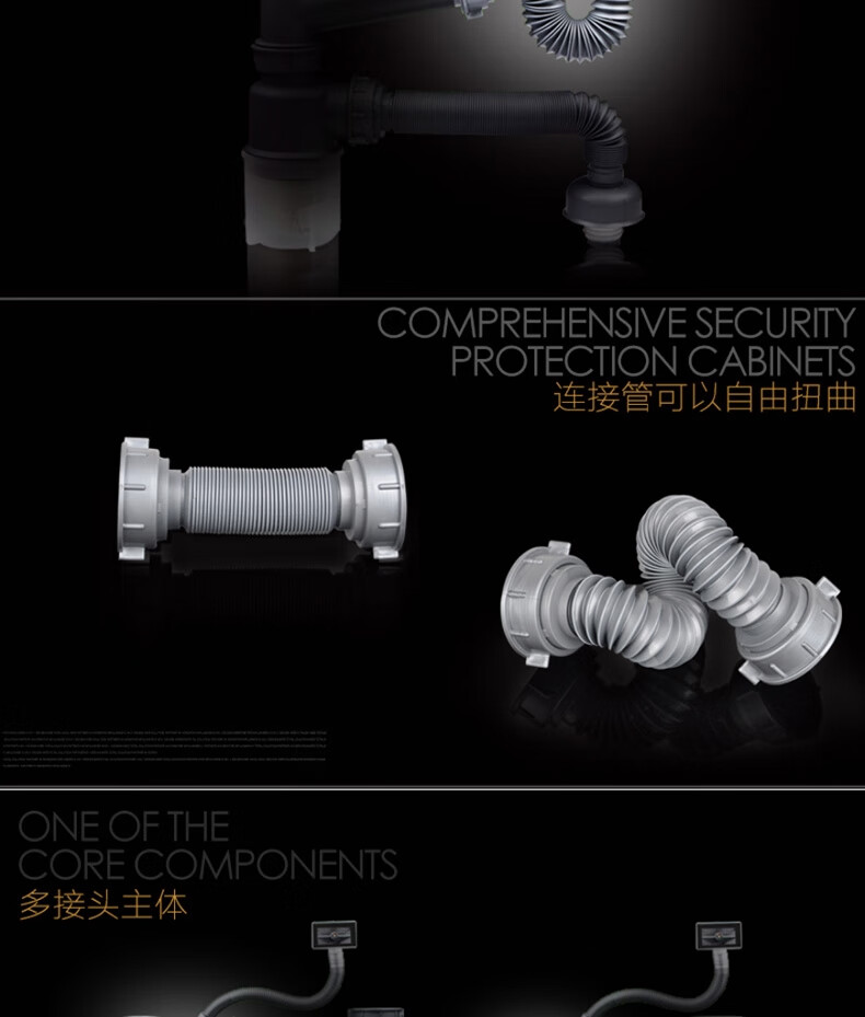 Submarine single and double sink sink, dish basin, kitchen food waste disposer crusher sewer pipe, connected to the sewer pipe of garbage disposal (single sink)
