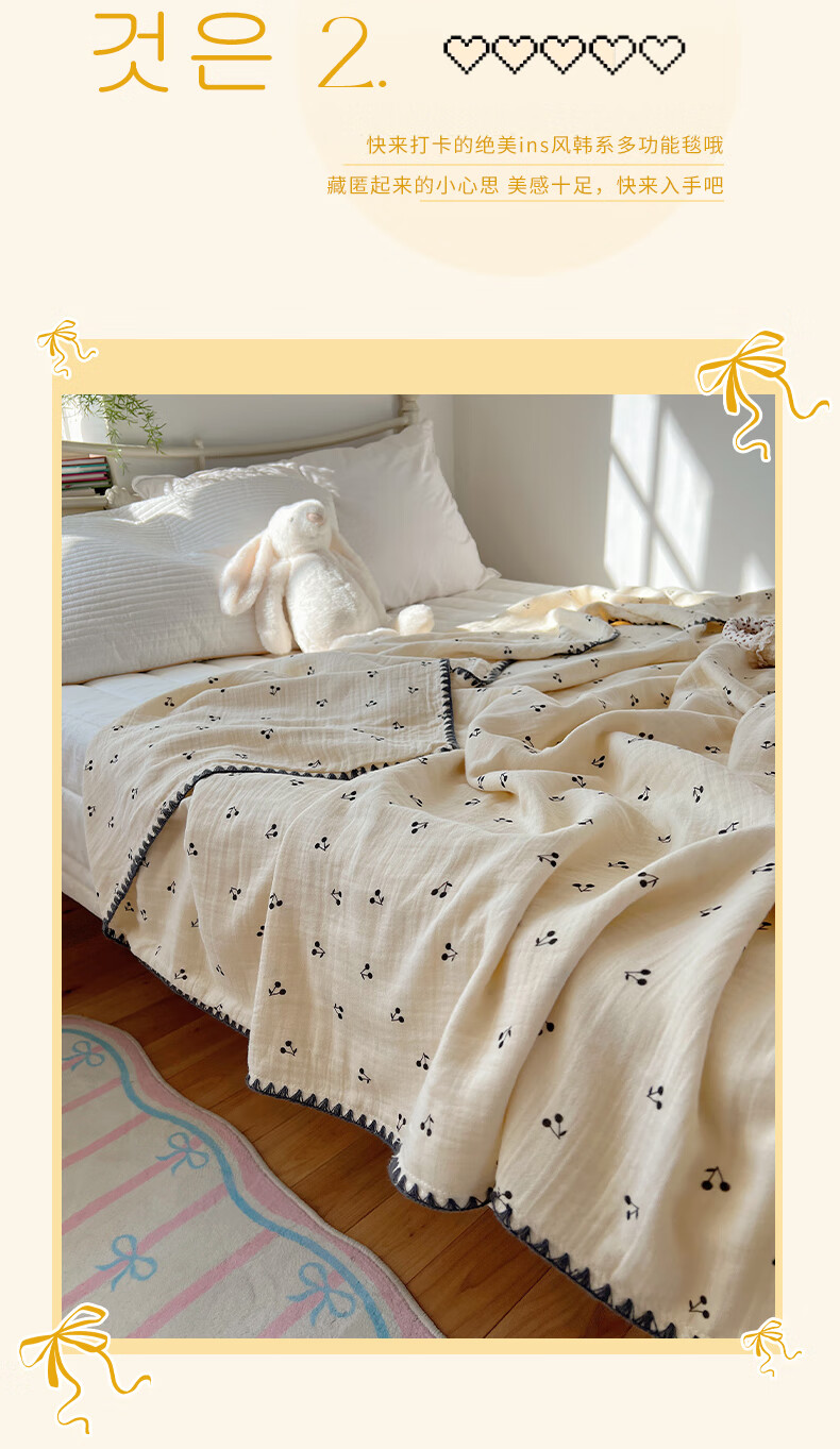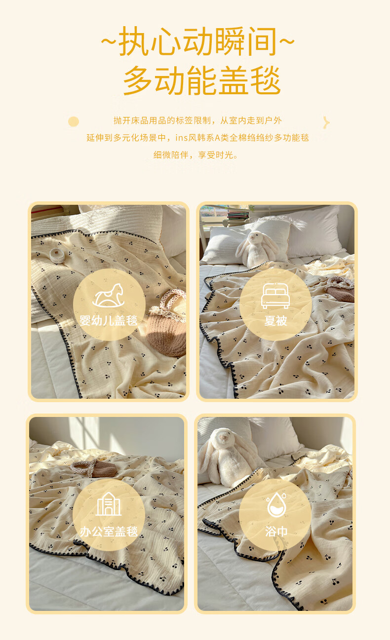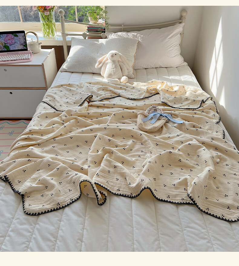 Su Xuan Class A baby pure cotton double-layer gauze blanket nap sofa small blanket cotton office blanket air conditioning quilt core Little Cherry 80x105cm leg covering blanket