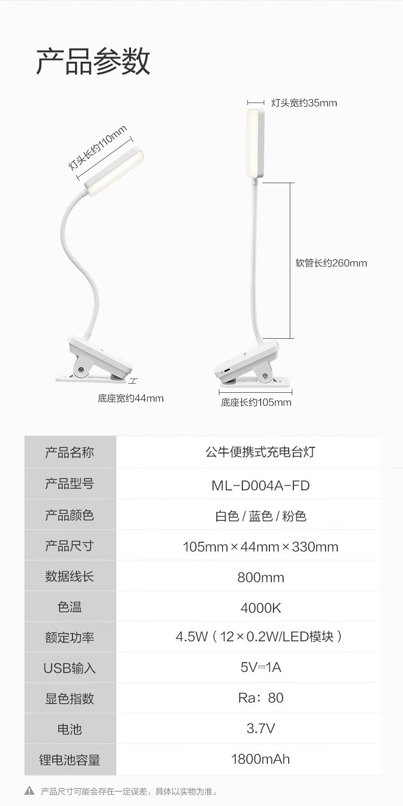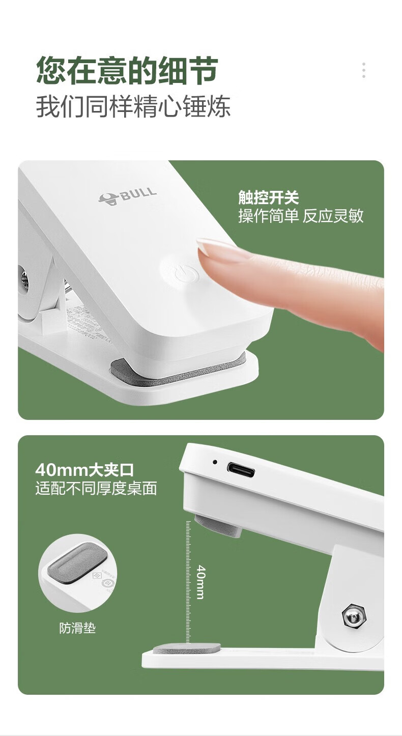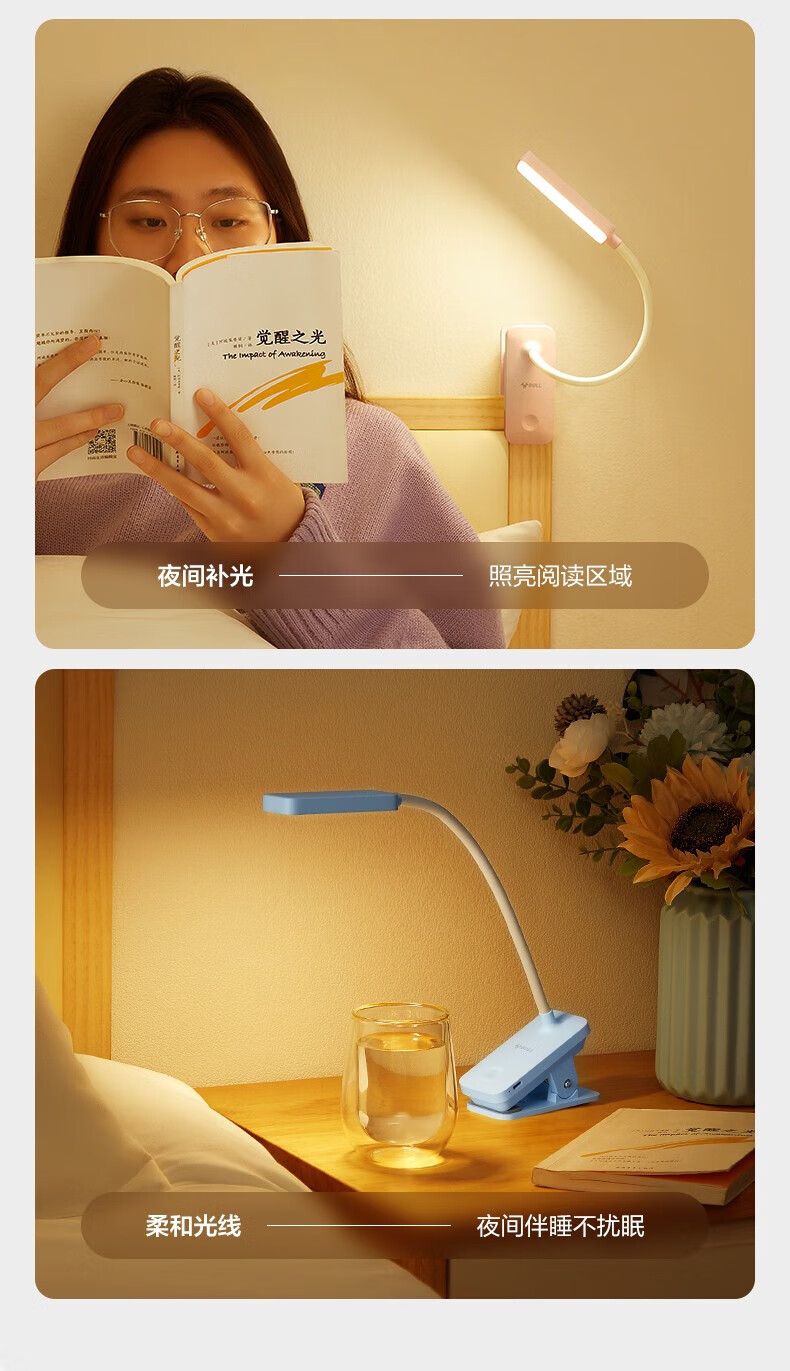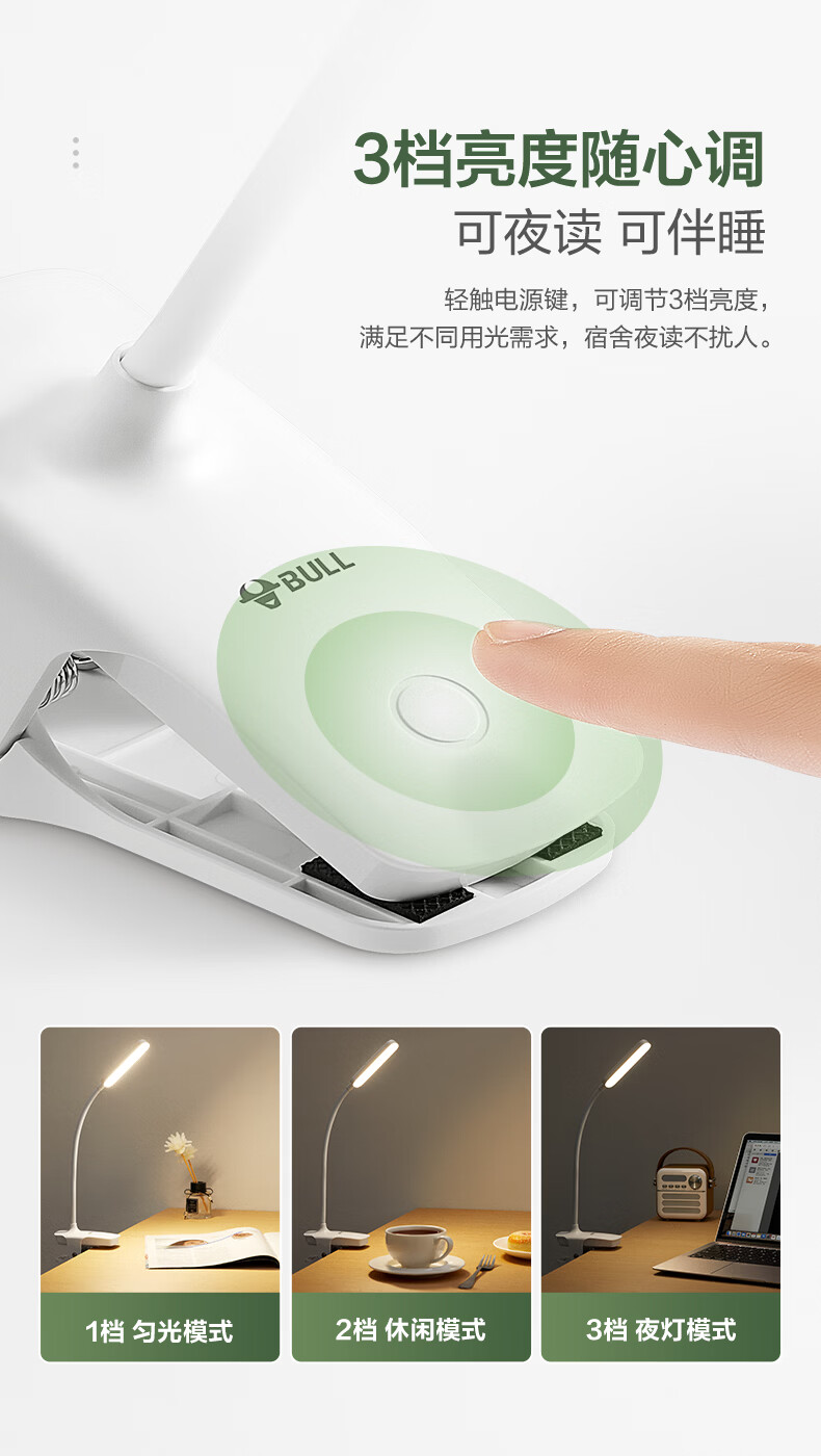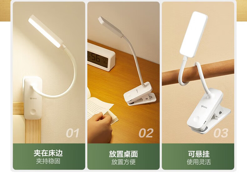 BULL Eye Protection Clip Bedside Lamp Bedroom Rechargeable Small Desk Lamp Learning and Reading Lamp Dormitory Clamp Desk Lamp with Extra Long Battery Life Rechargeable White 4.5w/Three-level Dimming Official Anti-Blue Light Clip-On Video Charger and Plug-in