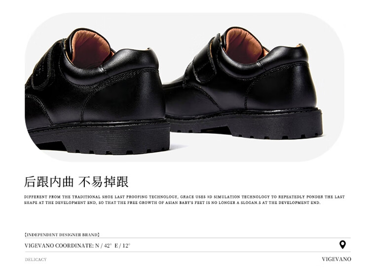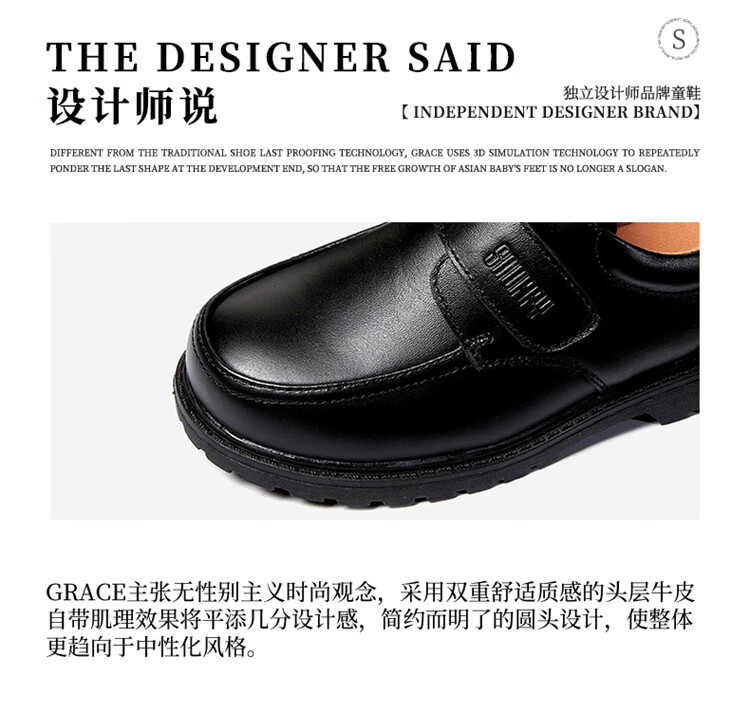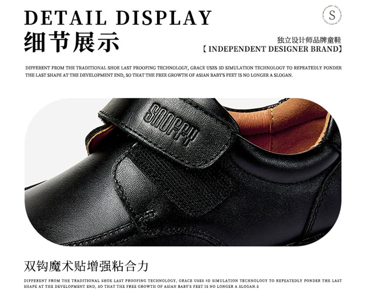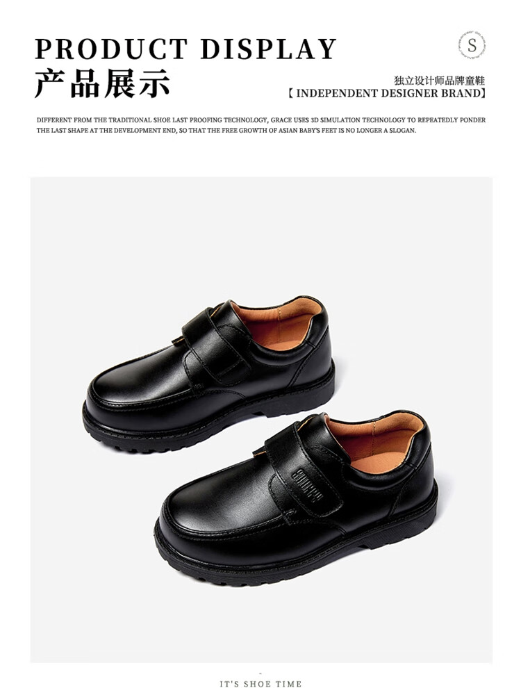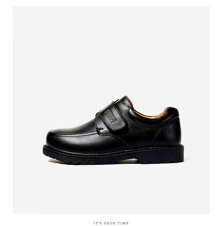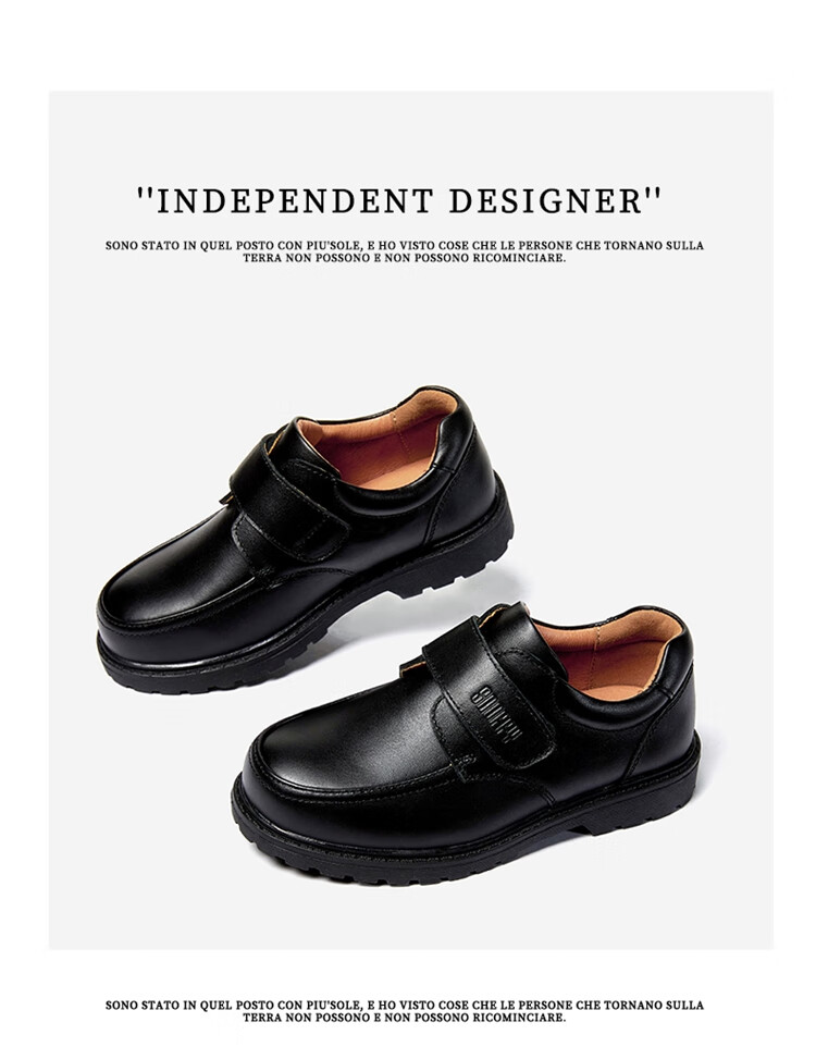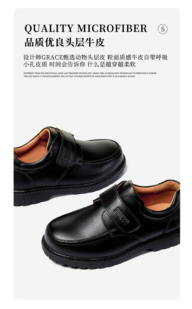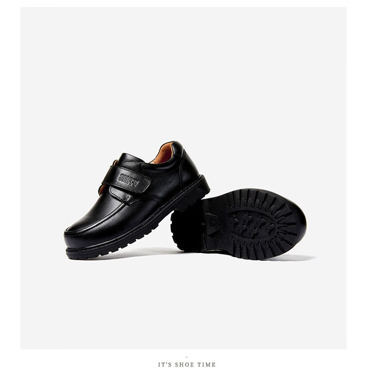 Snuffy boys' leather shoes spring new style children's style soft sole performance black leather shoes college black 27 recommended foot length 16.3cm
