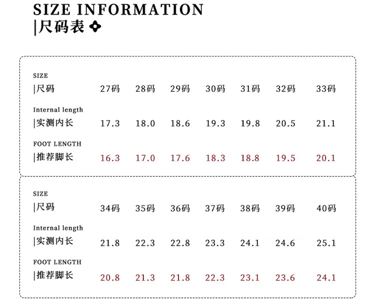 Length (cm) 22.8 23.1 23.5 24.1 24.5 25.1 25.7 26 26.7 27.3 27.9 28.6 29.2