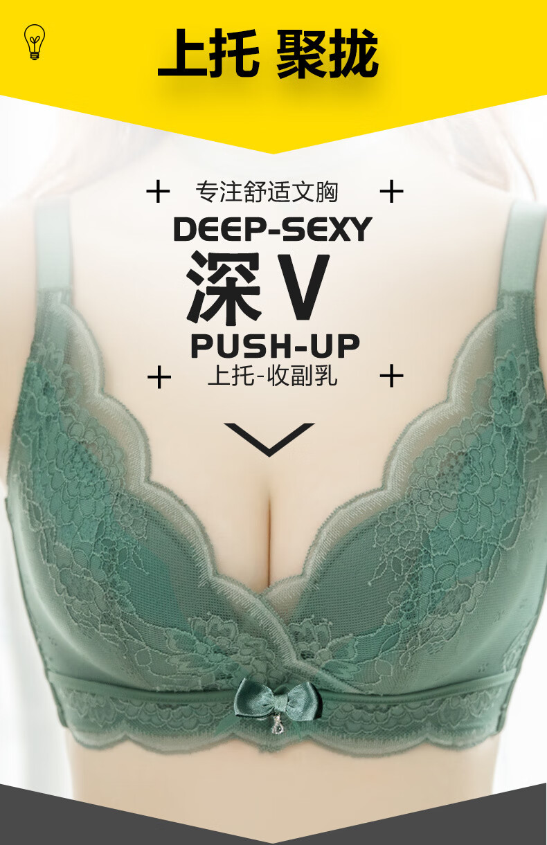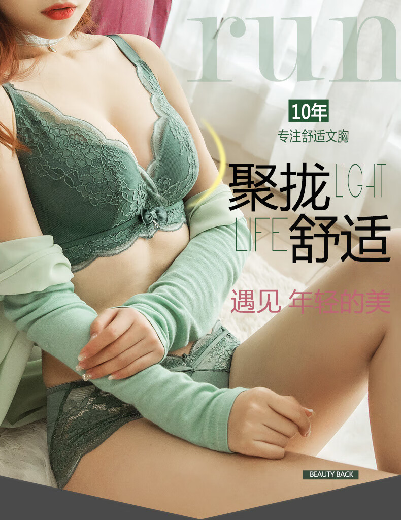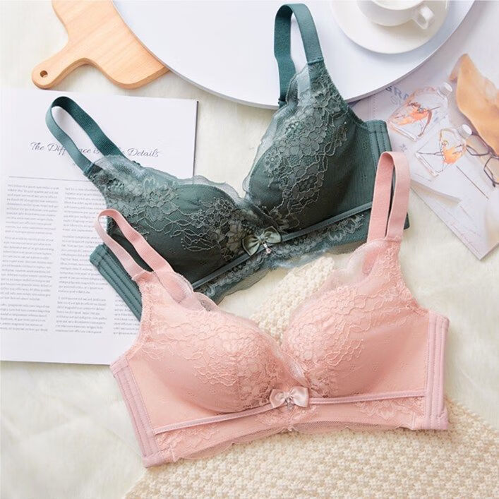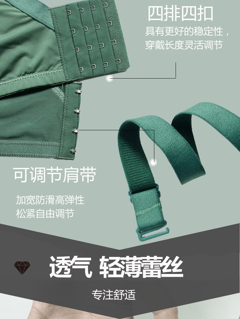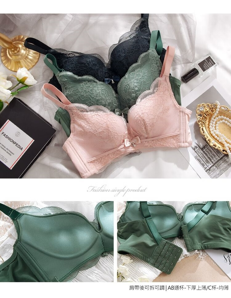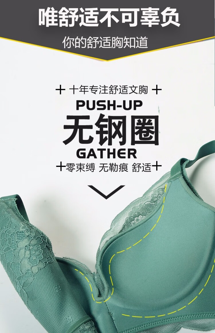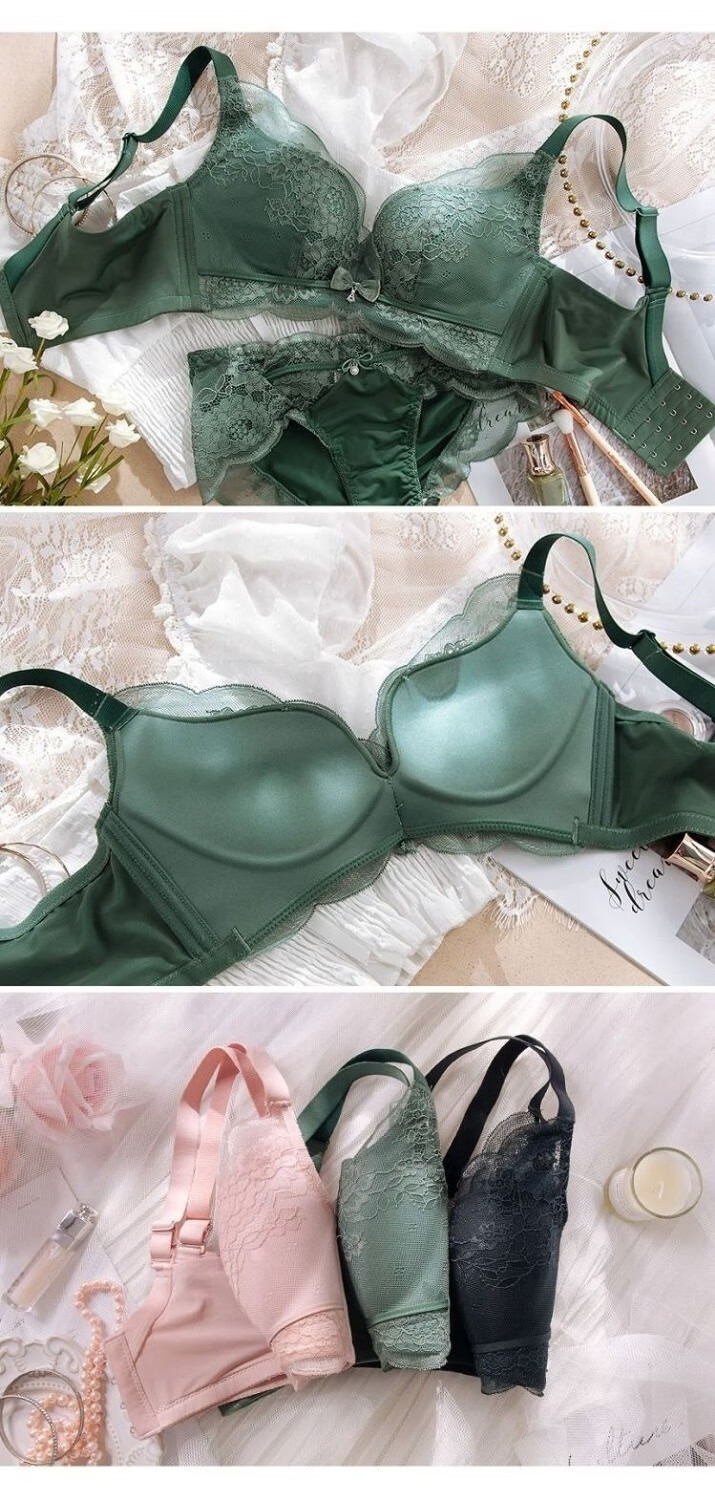 Modal Twilight Angel Bra without Wires, Small Breasts, Sexy Push-up Upper Support Breast Adjustable Lace Bra Set, Yunxi Green Single Piece 70A 32B Universal