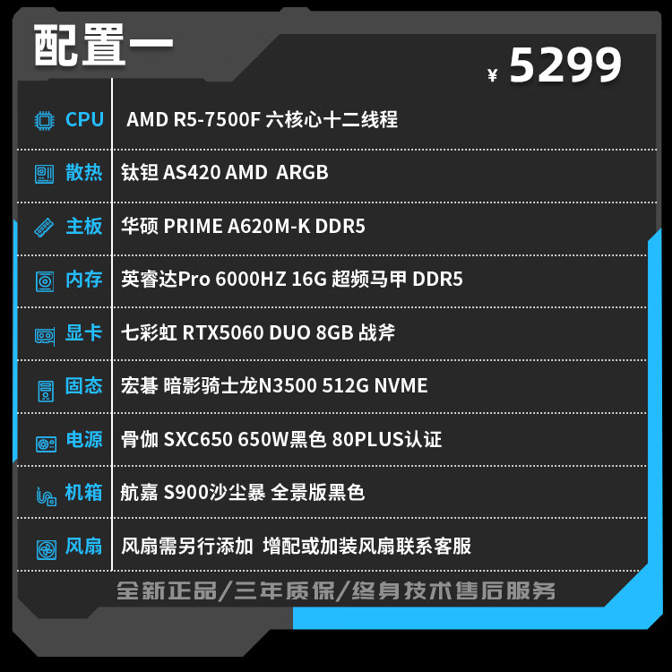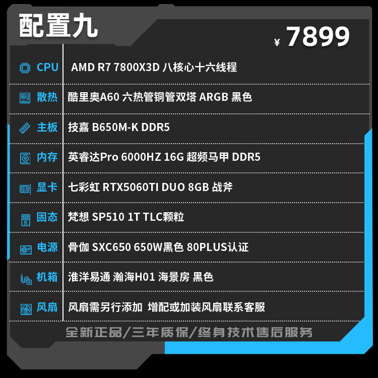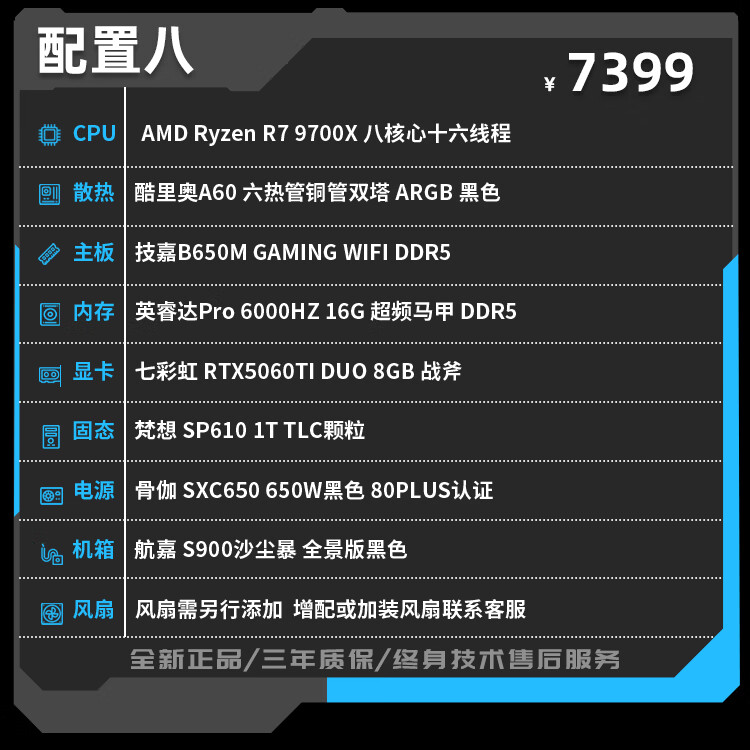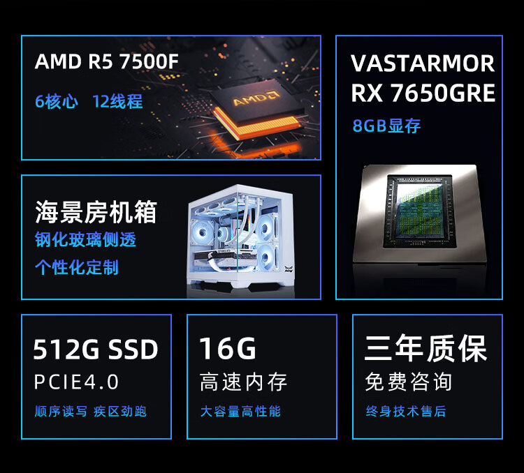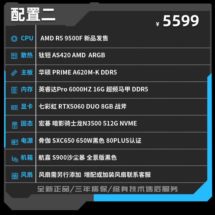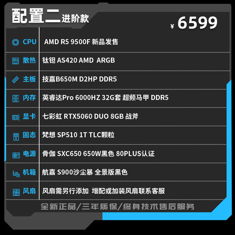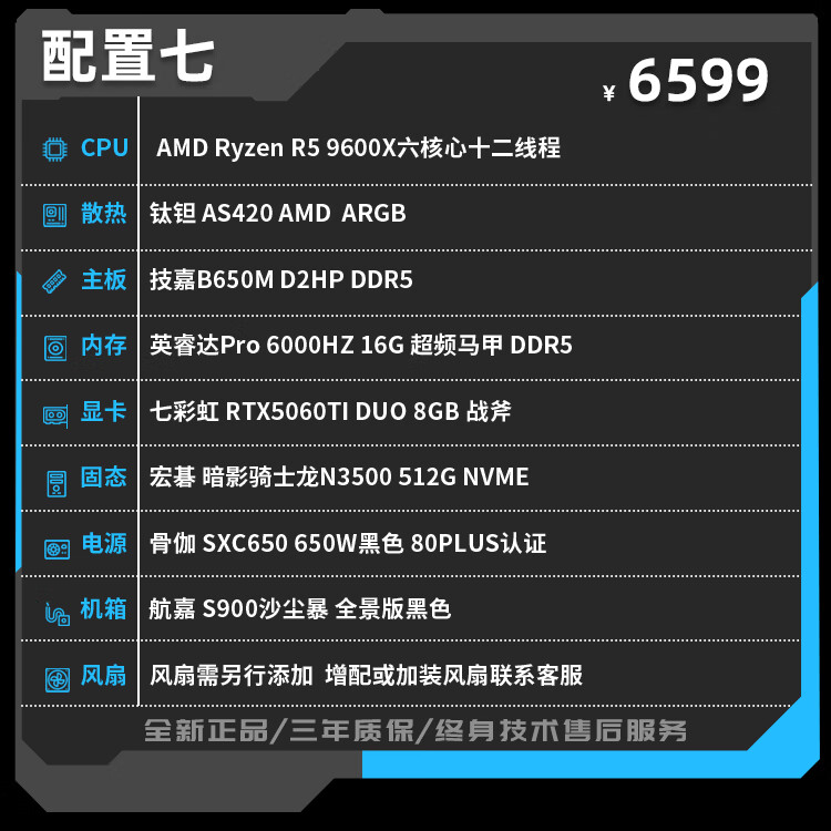 AMD9600X/9700X assembled computer complete brand new RTX5060/5060TI graphics card 3A game e-sports package assembled computer sea view room 100 yuan price difference (no communication to place an order and an ordinary mouse pad)