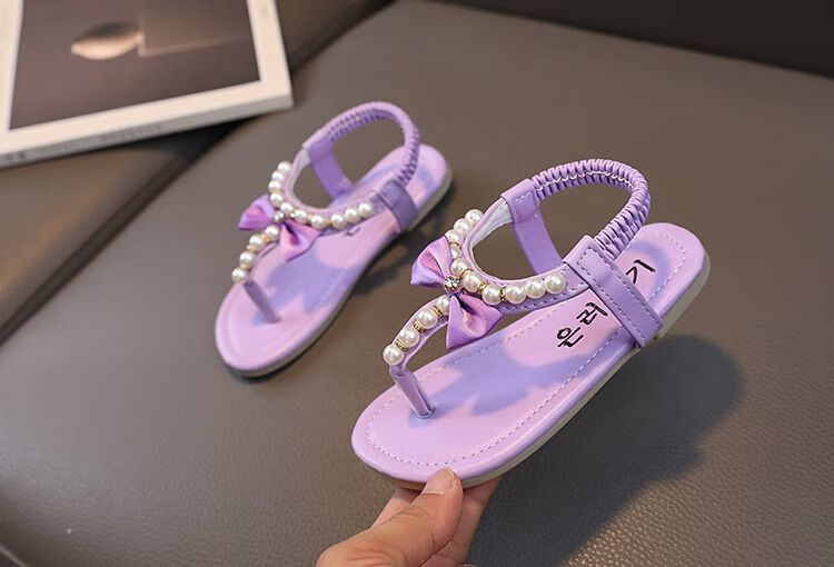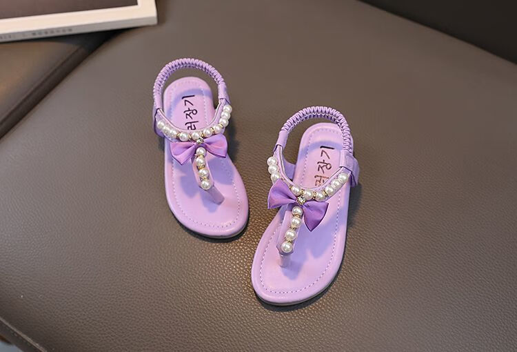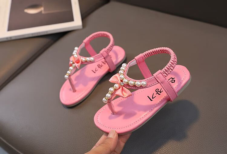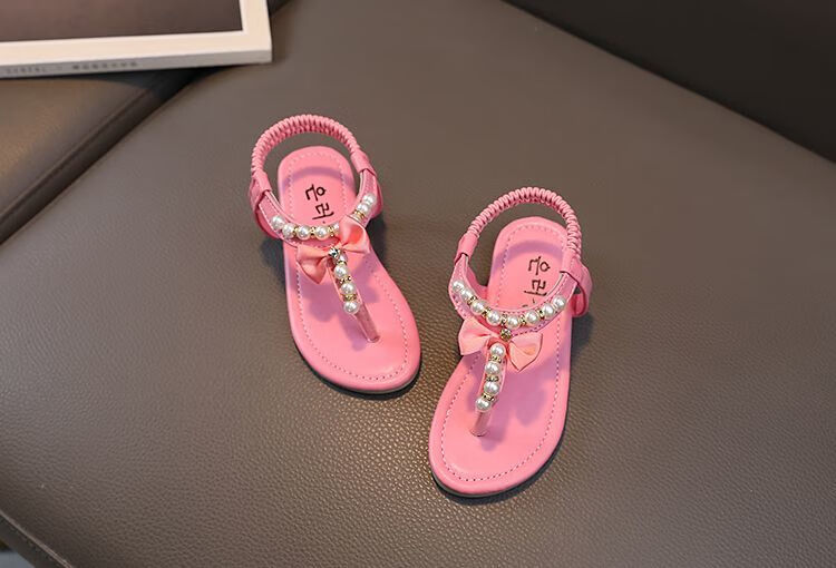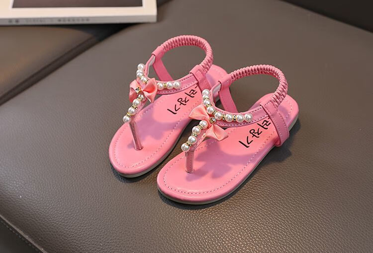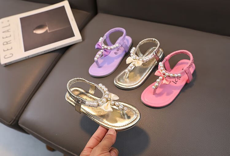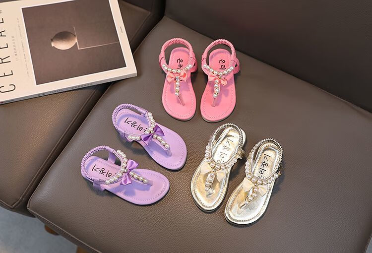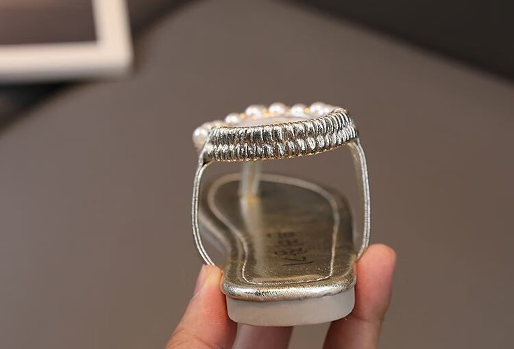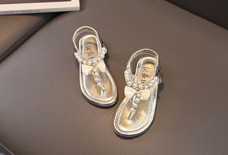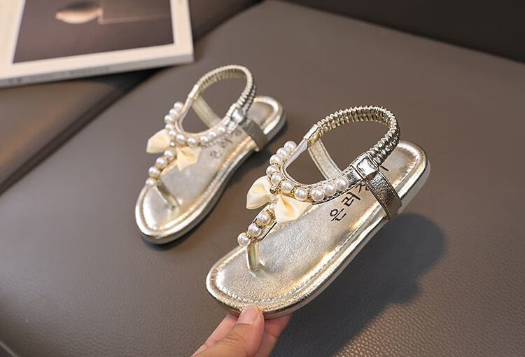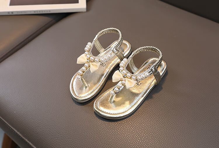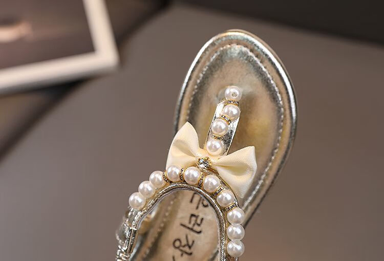 Rui Menghua girls' sandals new fashion Korean style little princess flip-flops for children and girls summer princess shoes for baby middle and large children gold 33 shoe inner length 20.5cm
