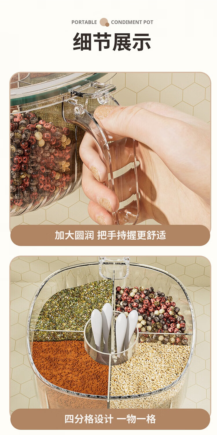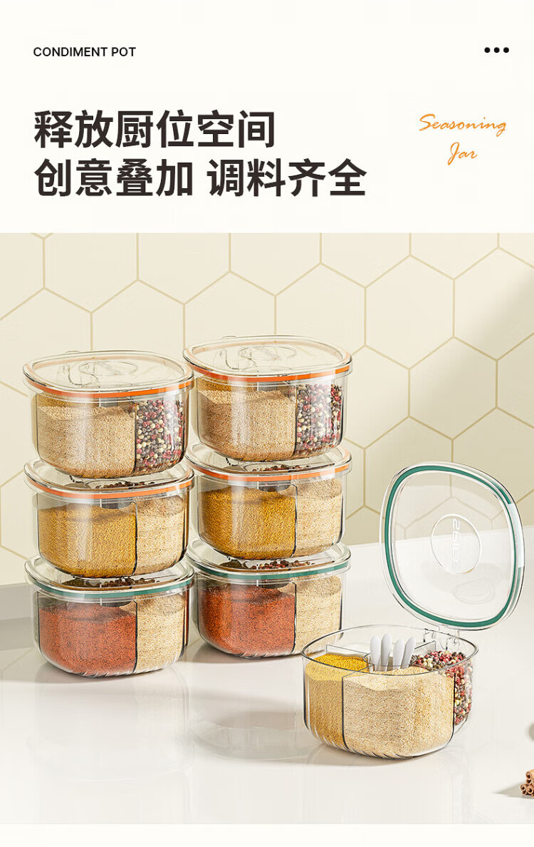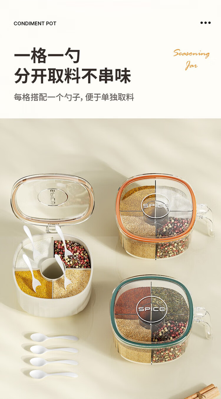WCZ German seasoning box home kitchen combination multi-grid salt, MSG and pepper storage condiment seasoning jar olive green 4-grid seasoning box