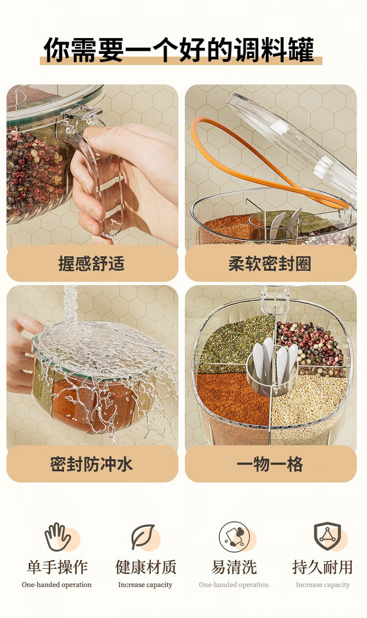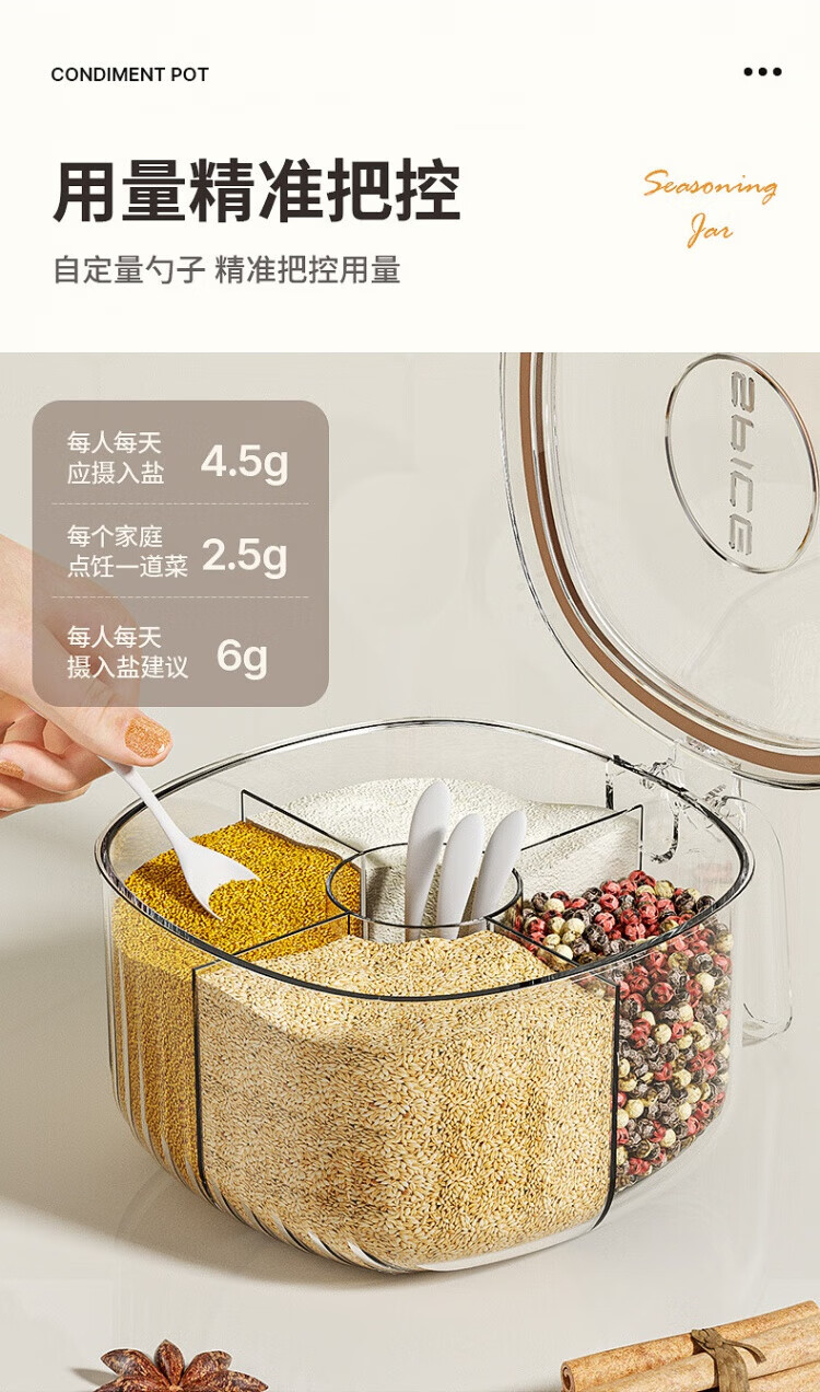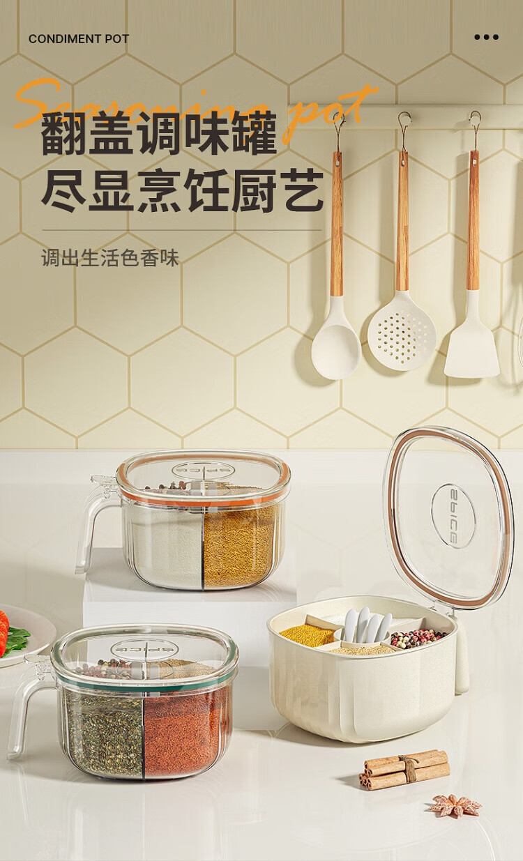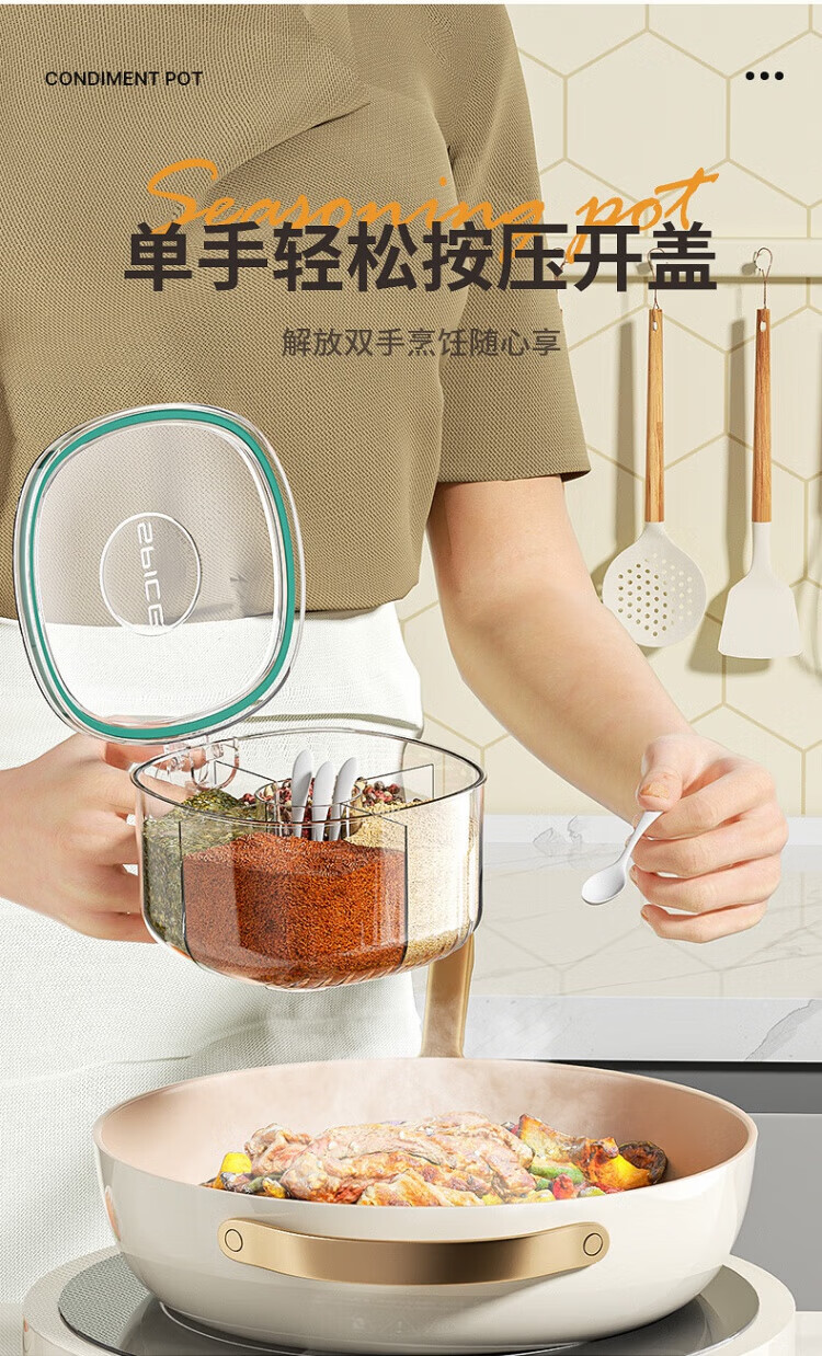 WCZ German seasoning box home kitchen combination multi-grid salt, MSG and pepper storage condiment seasoning jar olive green 4-grid seasoning box