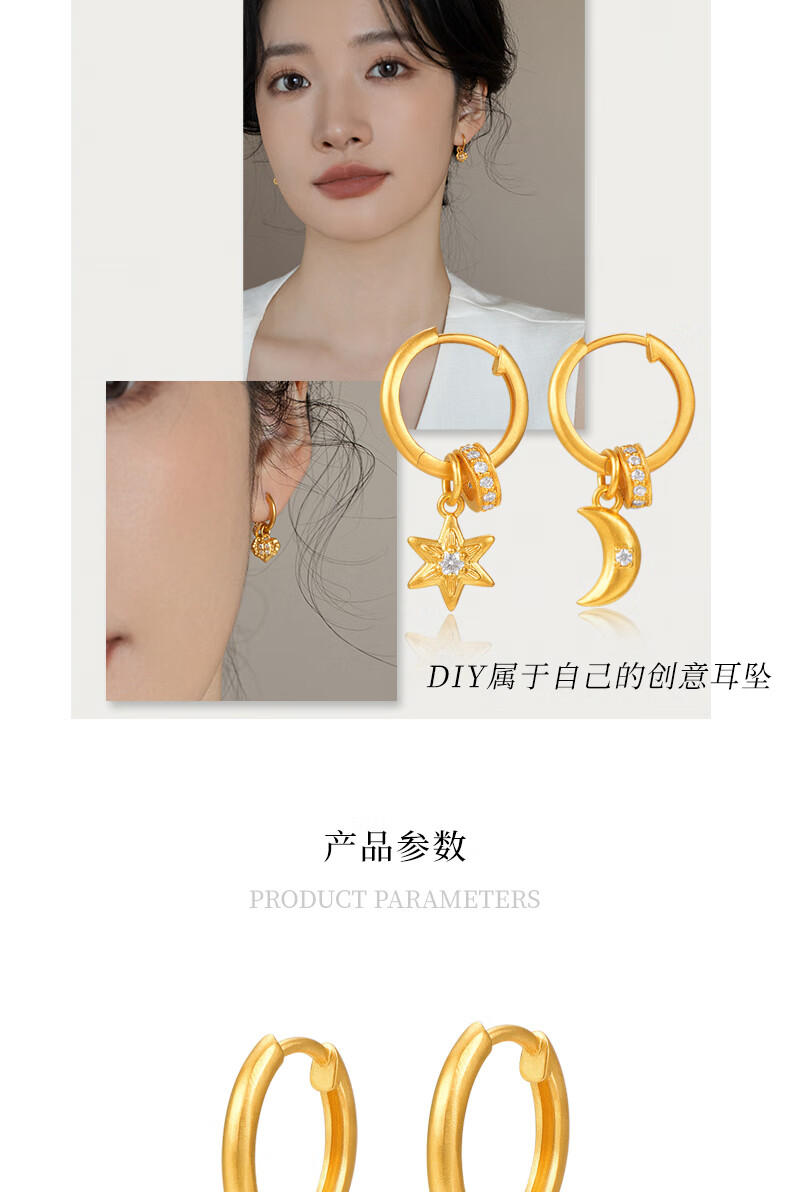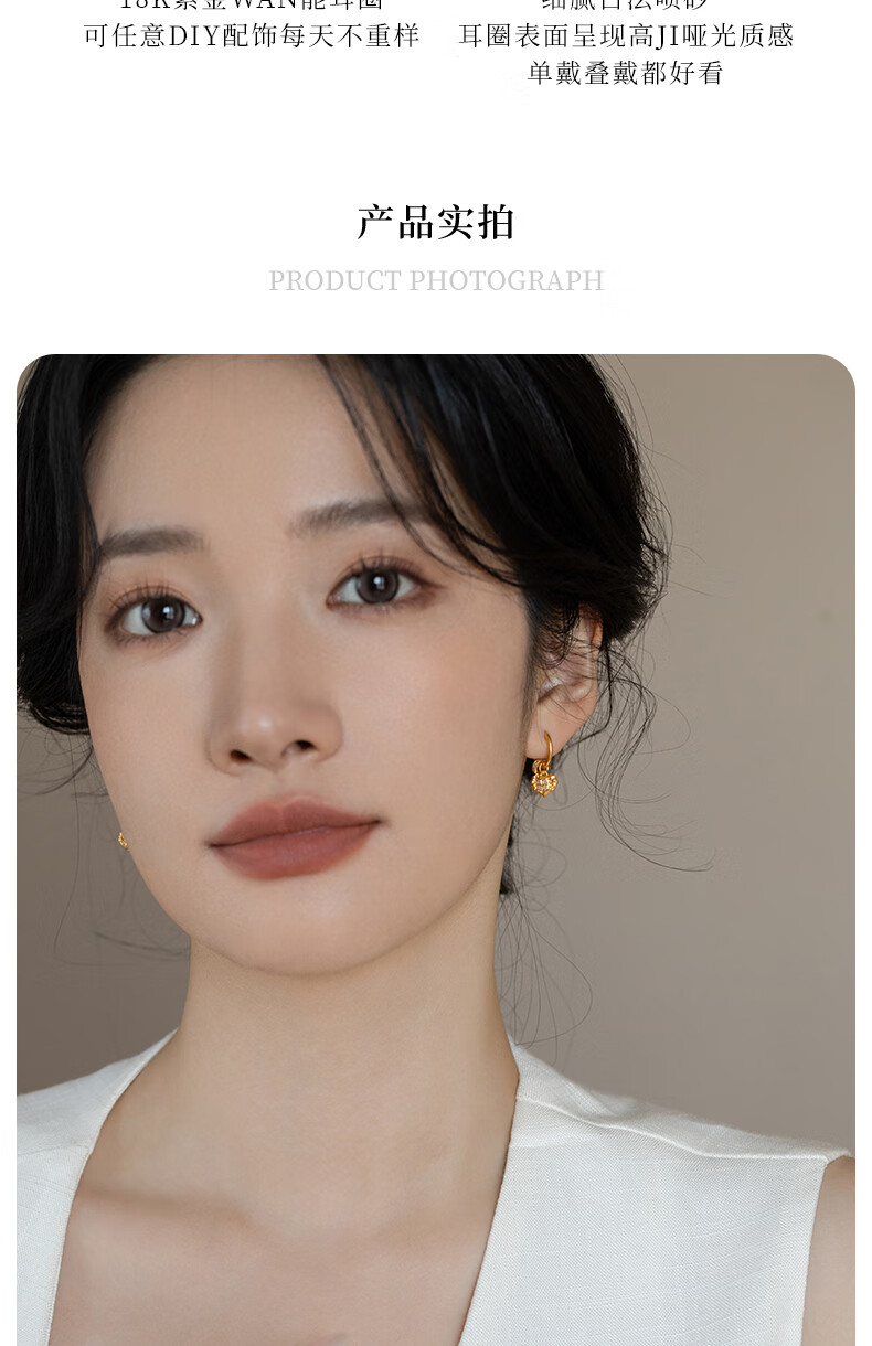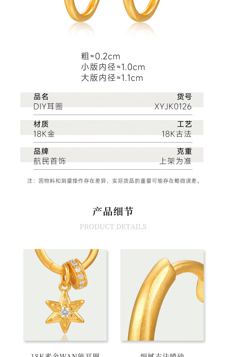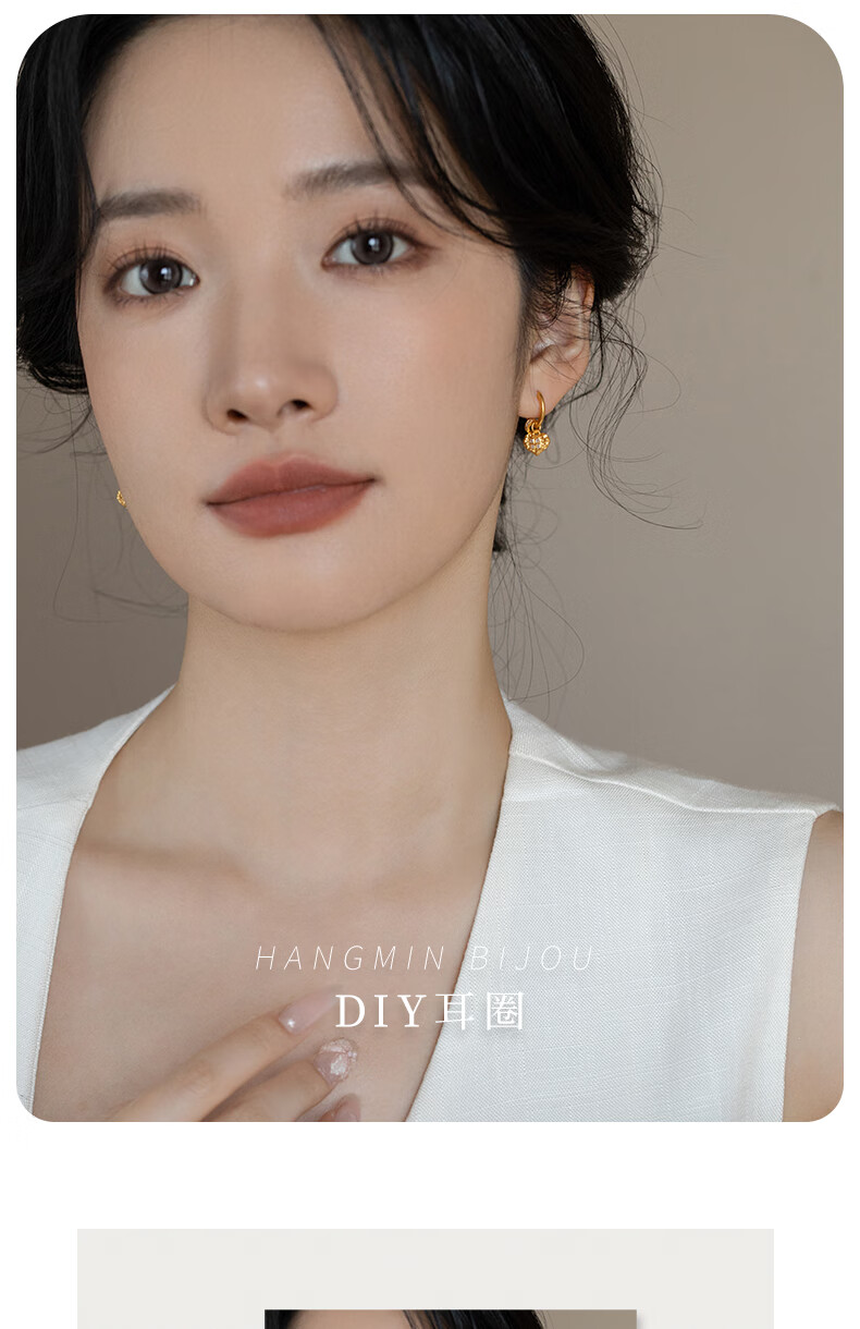 Hangmin Jewelry DIY earrings 18K gold earrings ins plain earrings simple high-end women's XYJK0126 piece count about 1.40-1.59g large version
