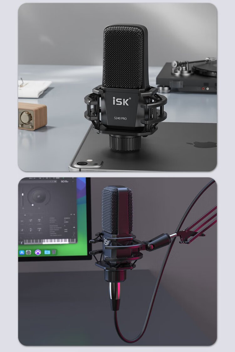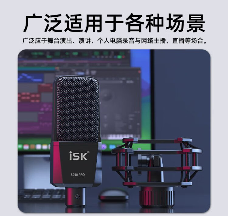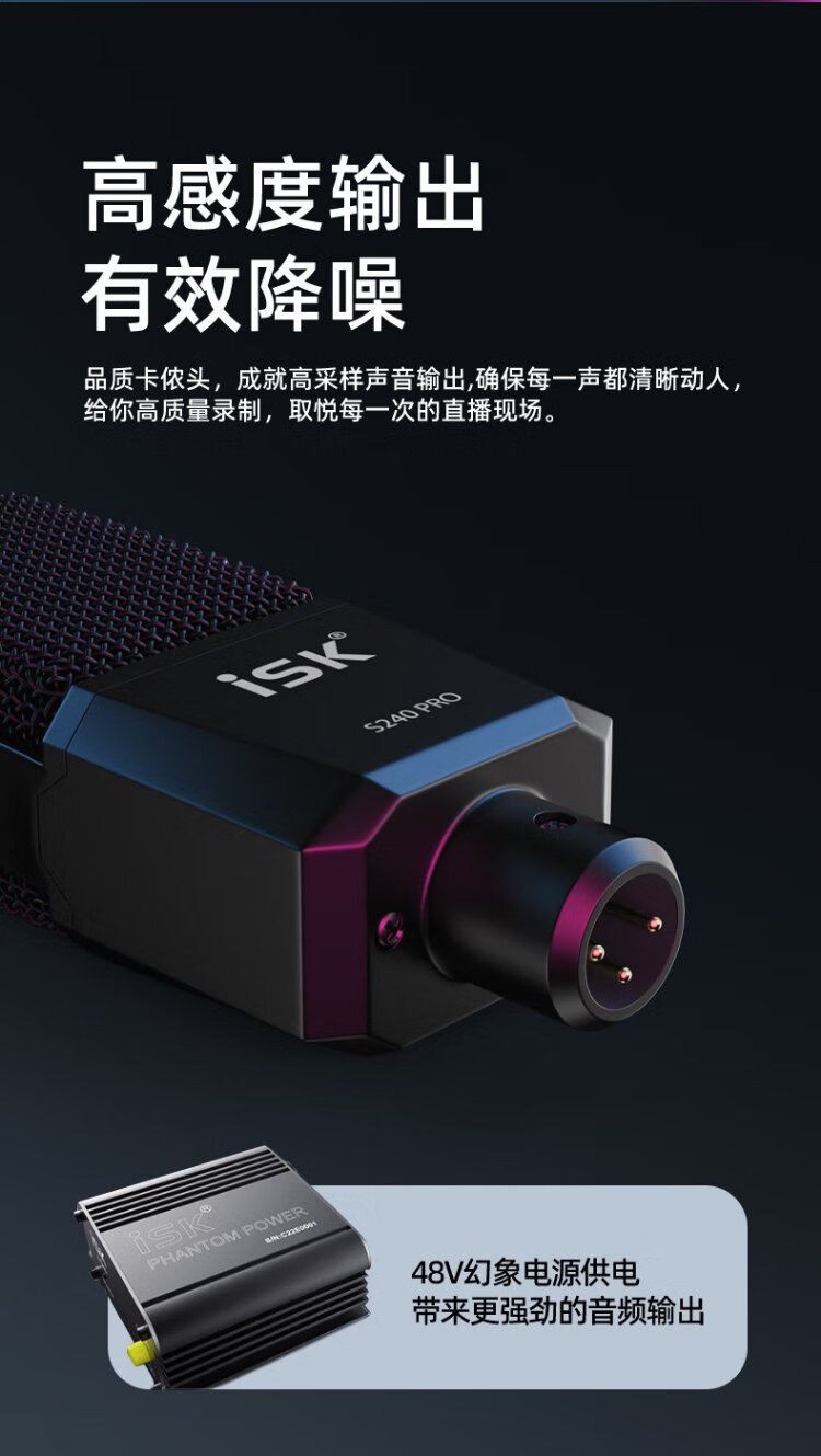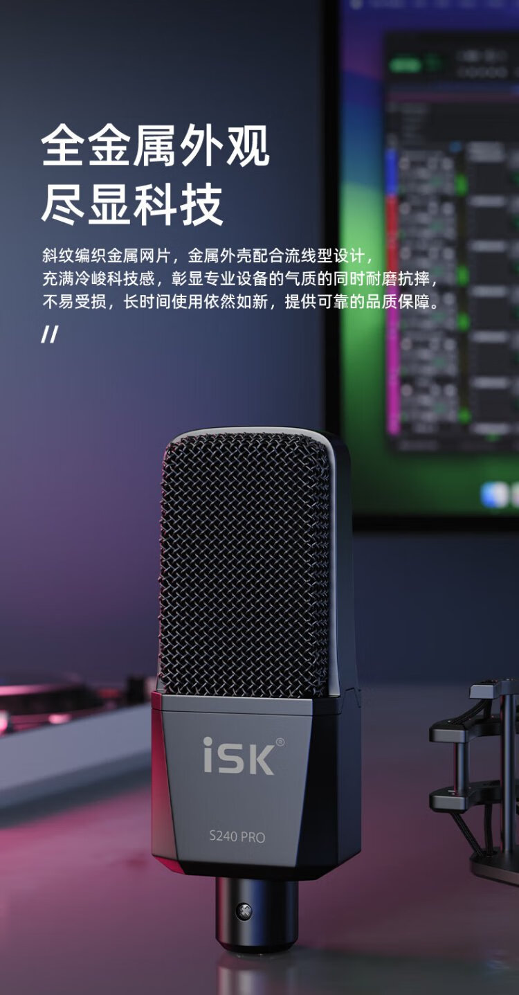 ISKS240PRO condenser microphone anchor live broadcast karaoke singing professional recording sound card set microphone equipment complete set iSK S240PRO single product (set optional)