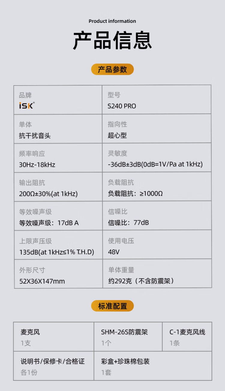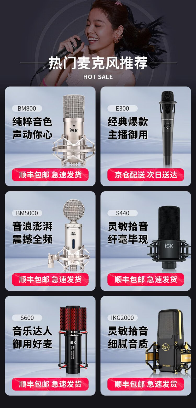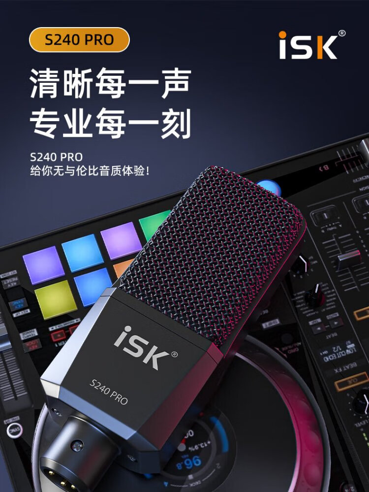 ISKS240PRO condenser microphone anchor live broadcast karaoke singing professional recording sound card set microphone equipment complete set iSK S240PRO single product (set optional)