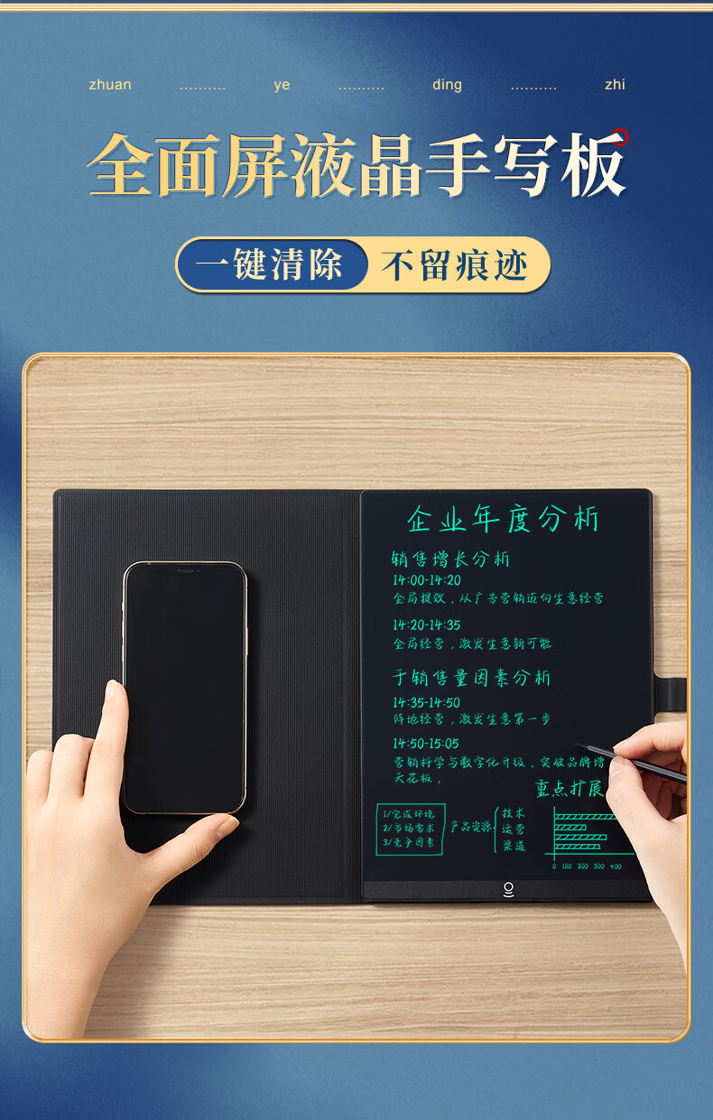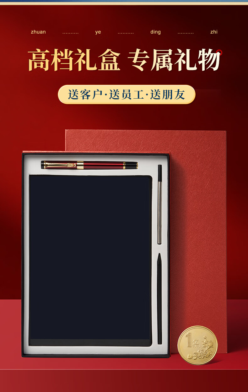 PBJ LCD handwriting pad full screen fine handwriting electronic drawing board notebook student draft paper draft book scannable hand-drawing board gift company custom logo Chinese red high-end gift box 11.5-inch black leather case + signature pen