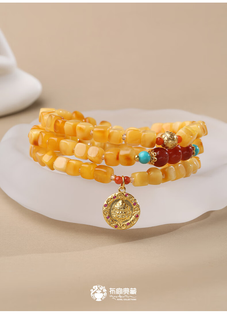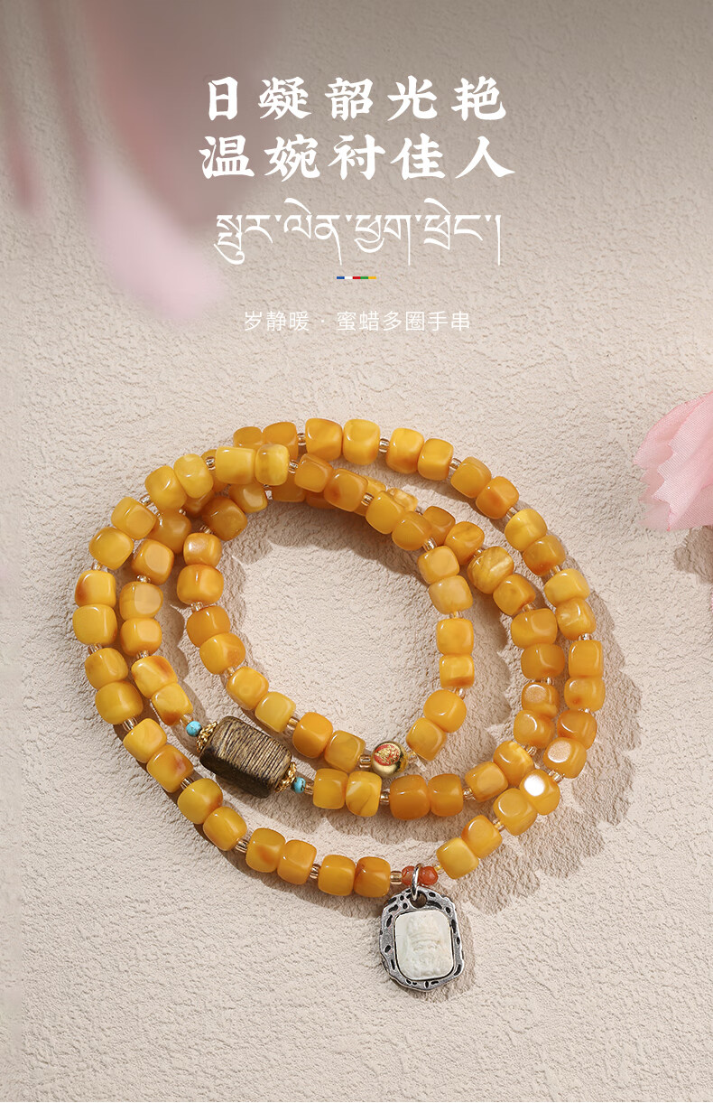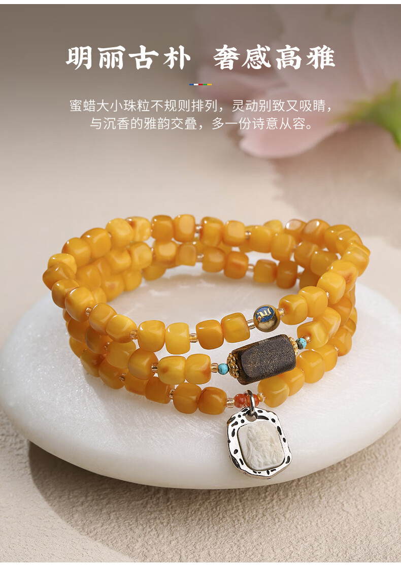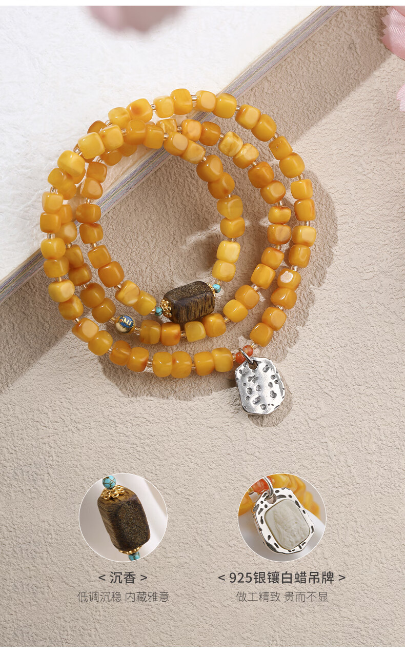 Potala Palace beeswax bracelets, agarwood sugar cubes, Zakiram beads, multi-circle 925 silver transfer beads, men's and women's bracelets, birthday gifts, year-old quiet and warm beeswax multi-circle bracelets