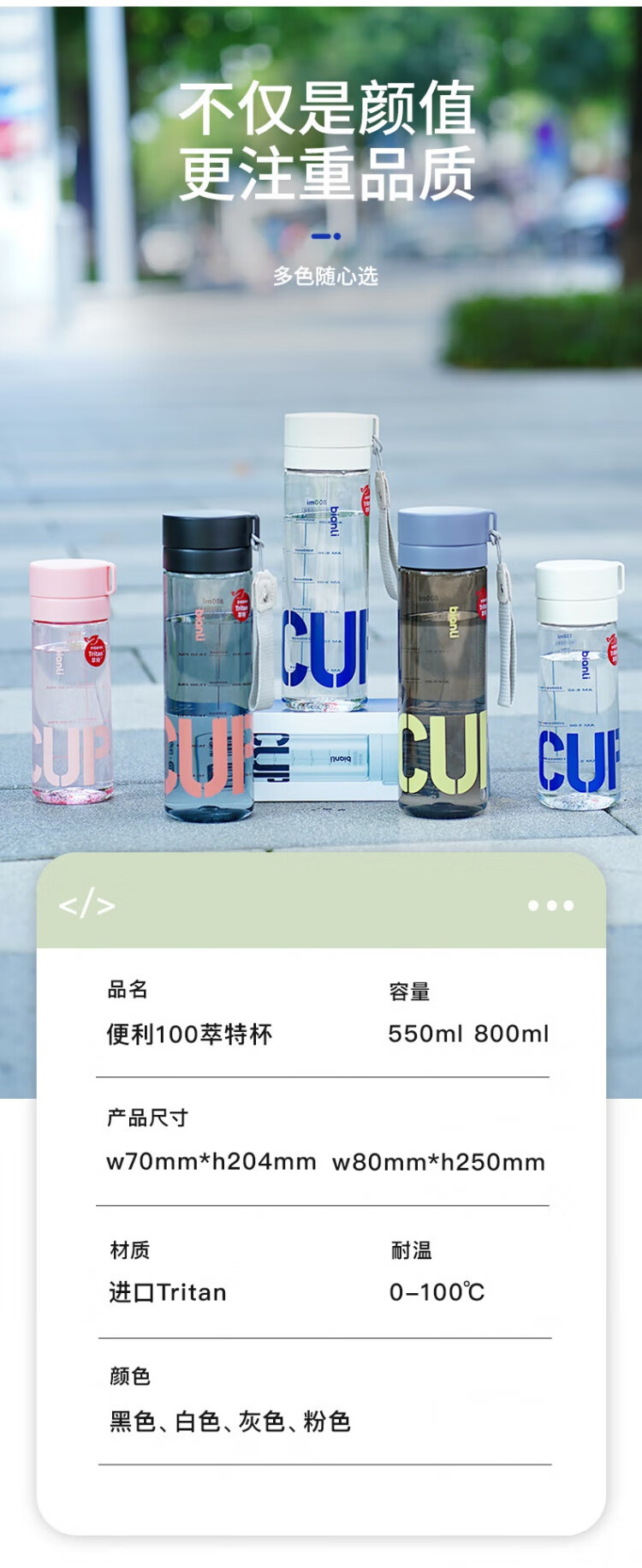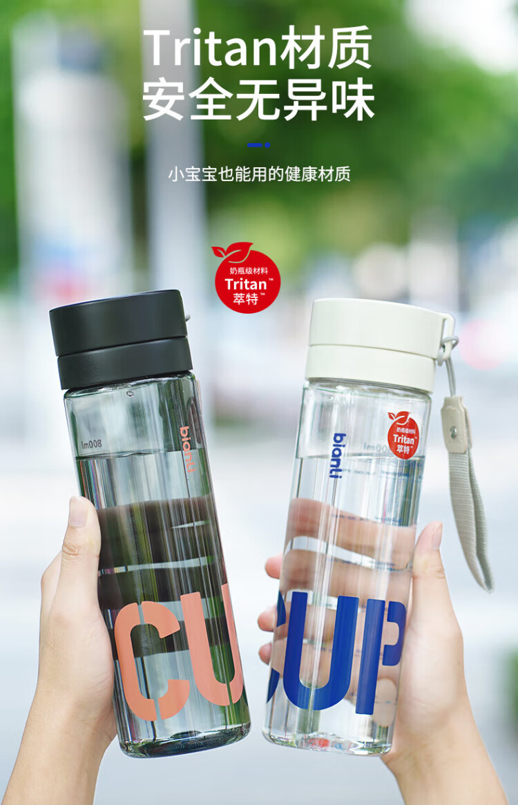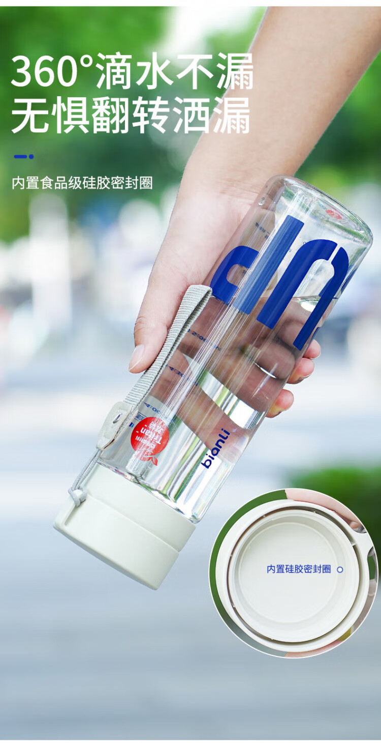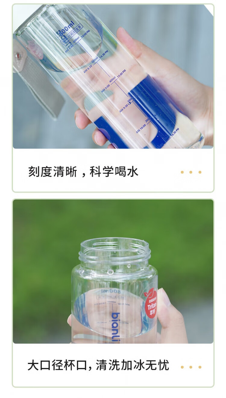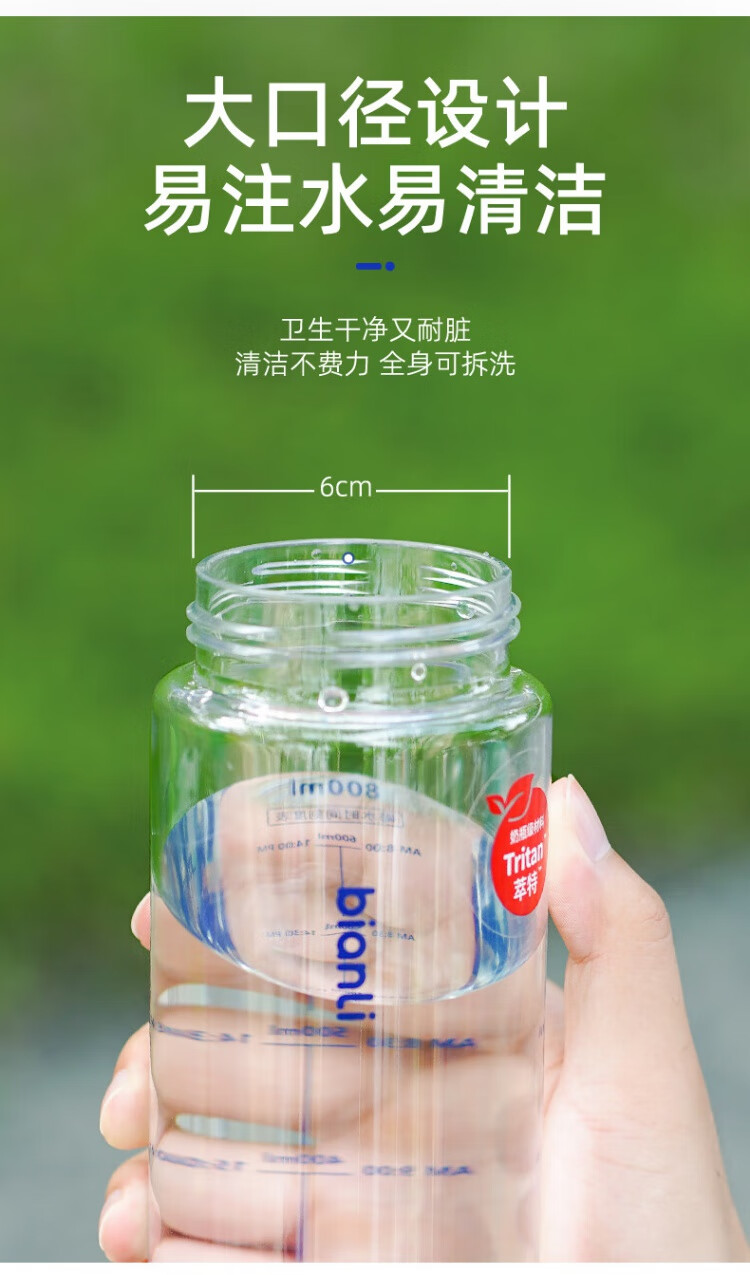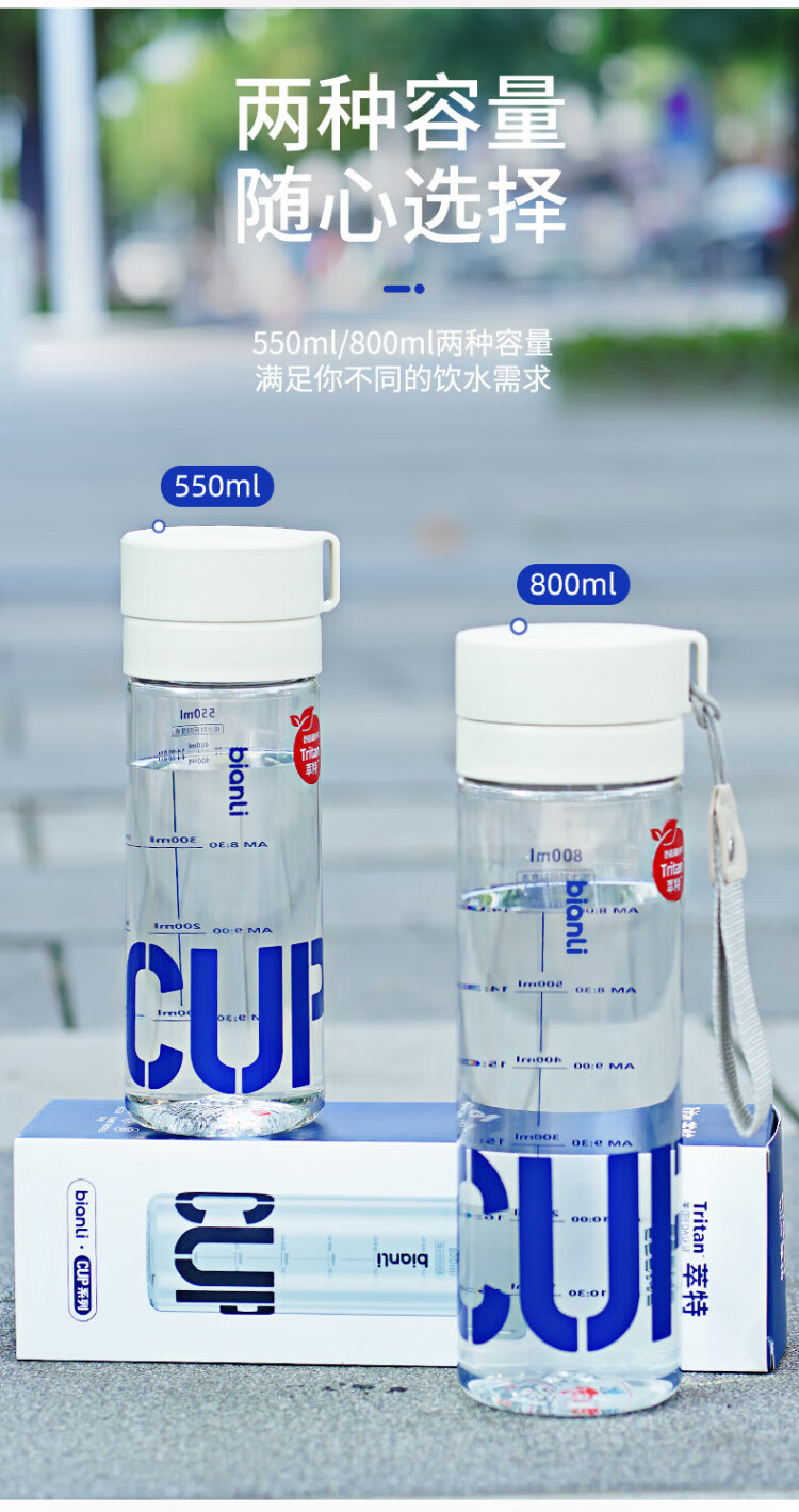 LNGA LANDGRE German imported quality tritan water cup for men, summer sports, high temperature resistant student tea cup, female plastic large capacity, American tritan material, white (with 800ml