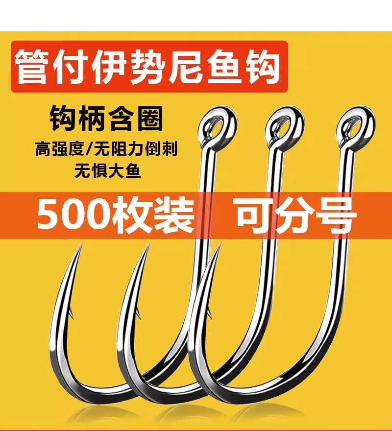 Raptor 500 pieces of Iseni fish hooks in bulk with barbs, loops and holes, fishing hooks and fishing gear with loops, Iseni tubes, 50 pieces, No. 1