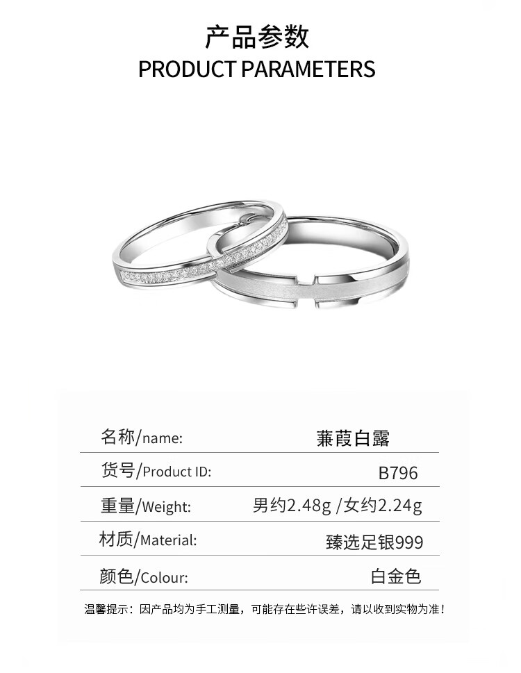 S999 pure silver Jianjia Bailu couple rings, a pair of niche light luxury closed wedding rings, Valentine's Day gift for girlfriend, a pair of Jianjia Cangcang couple rings, exquisite gift box