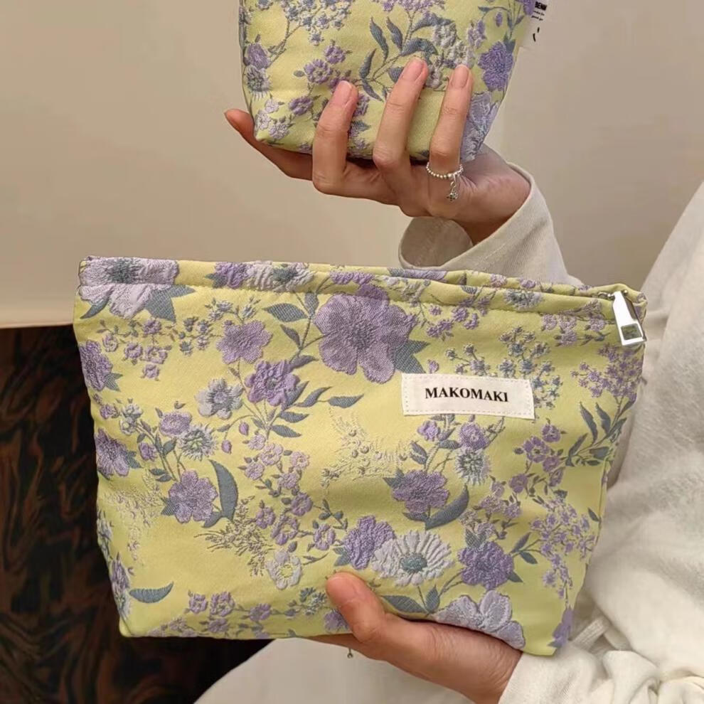 025 new yellow background purple flower niche cosmetic bag portable skin care product collection yellow background purple flower cosmetic bag