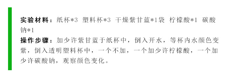 A complete set of materials for self-made acid-base indicators. Experiment for junior high school students. The color changes to red and green. Purple cabbage