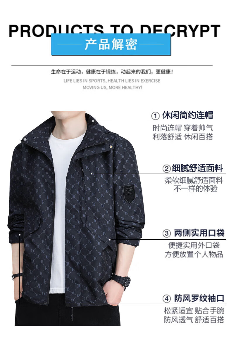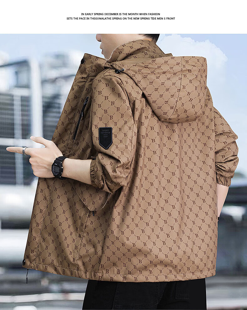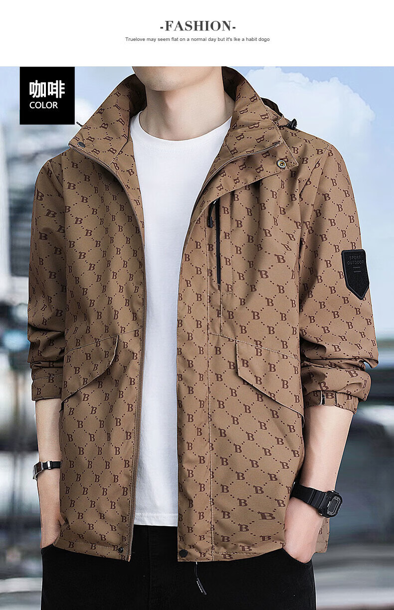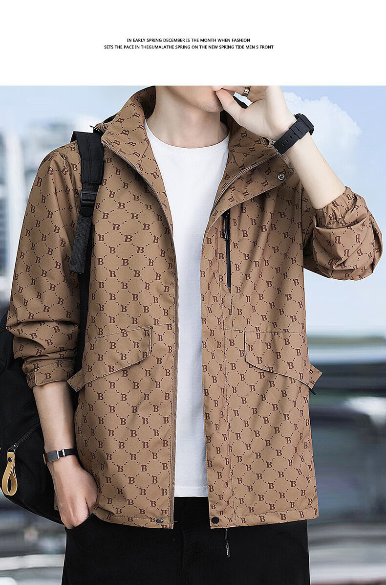 Yalu jacket men's spring and autumn trendy men's functional workwear jacket men's windproof jacket outdoor sports trendy brand top 88888 brown XL