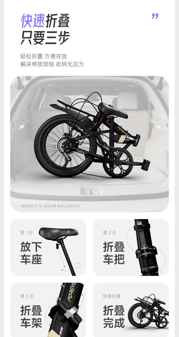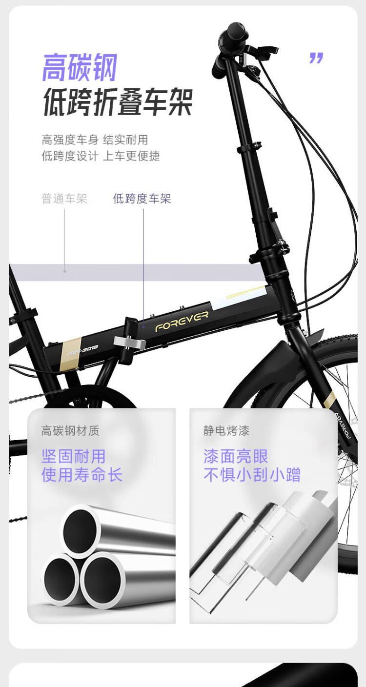 Permanent folding bicycle for adults, men and women, variable speed, ultra-light, portable student bicycle for commuting to work, no installation required, black 20-inch single-speed spoked wheel