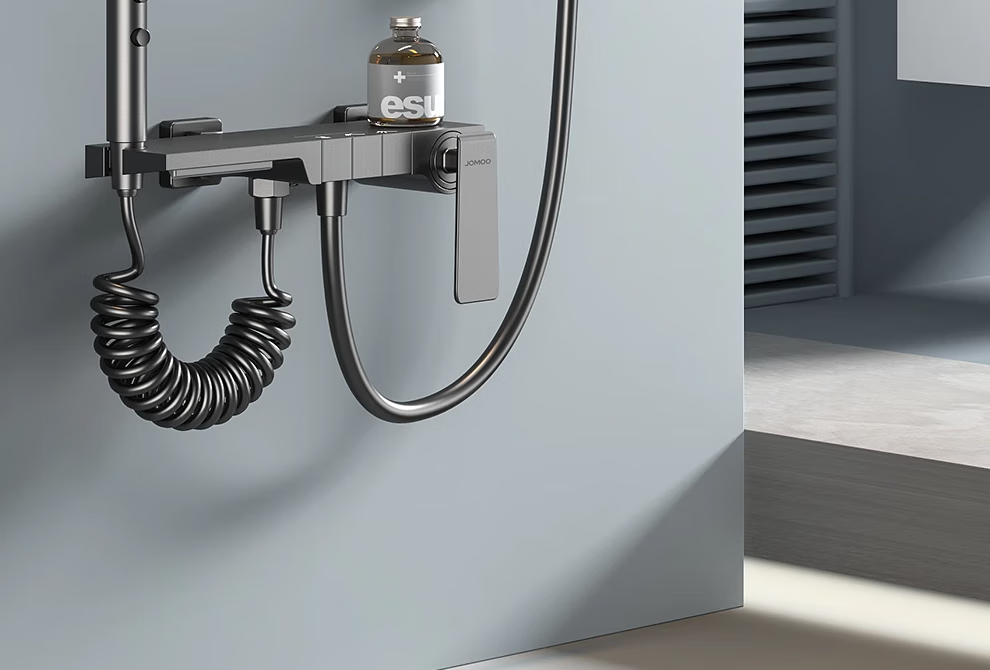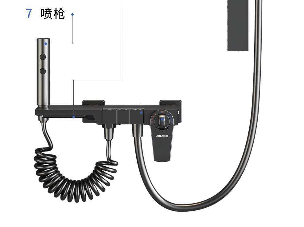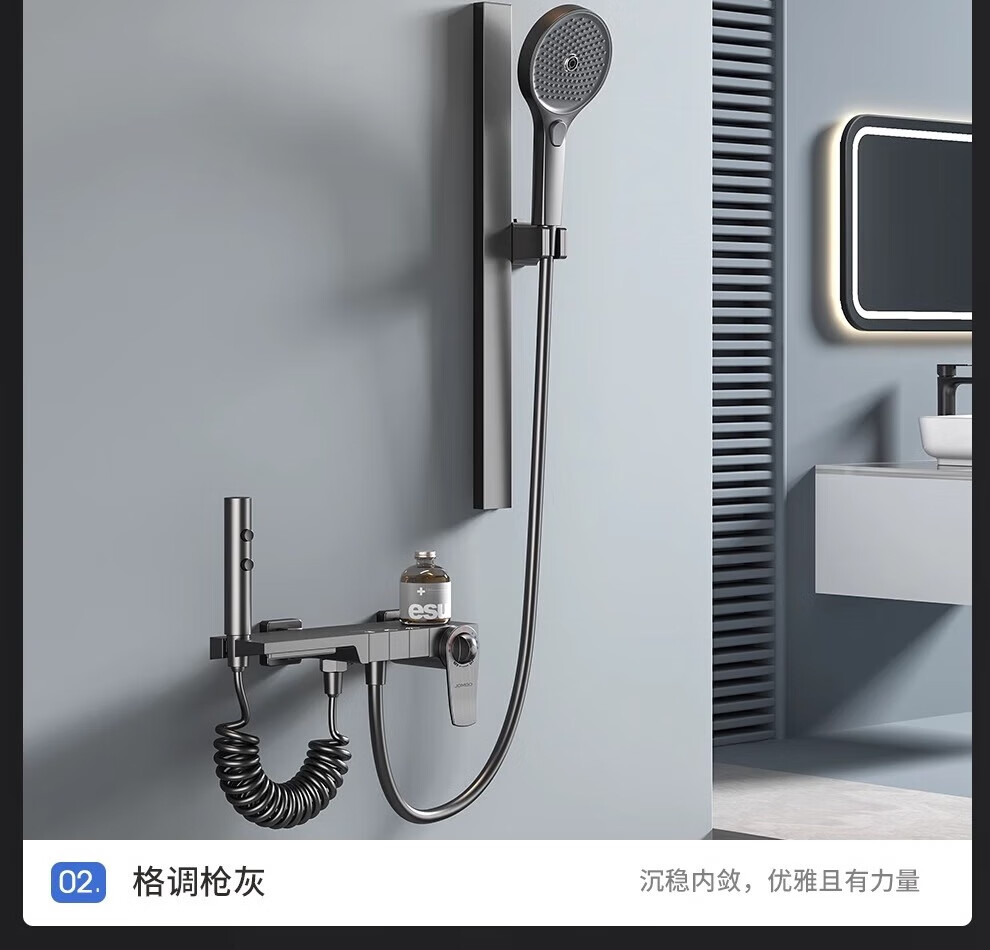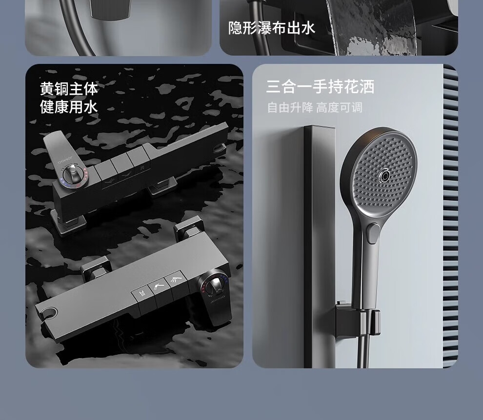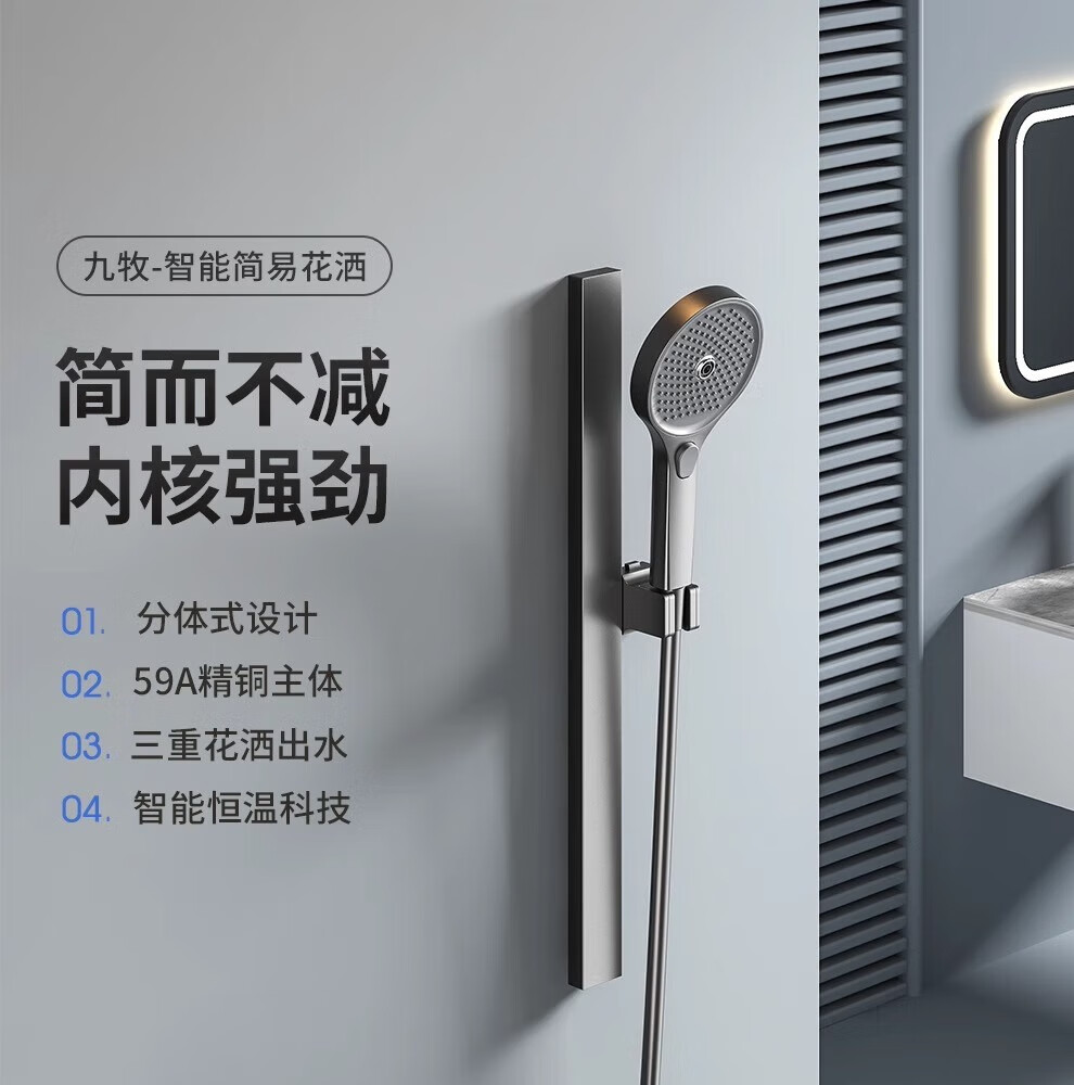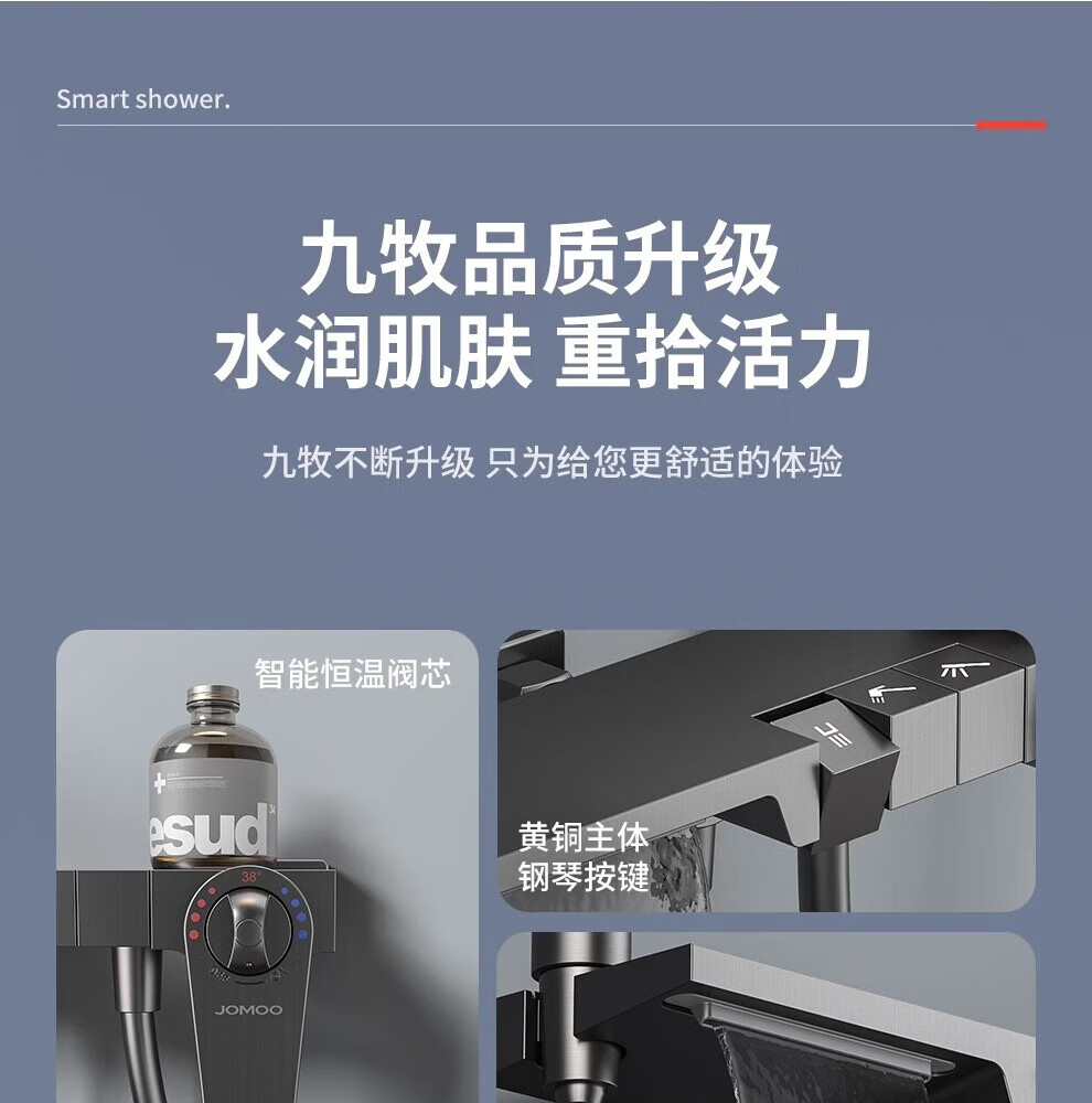 JOMOO/JOMOO simple all-copper shower head set supercharged gun gray small apartment bathroom split topless shower head A type - gun gray round shower head (constant temperature model)
