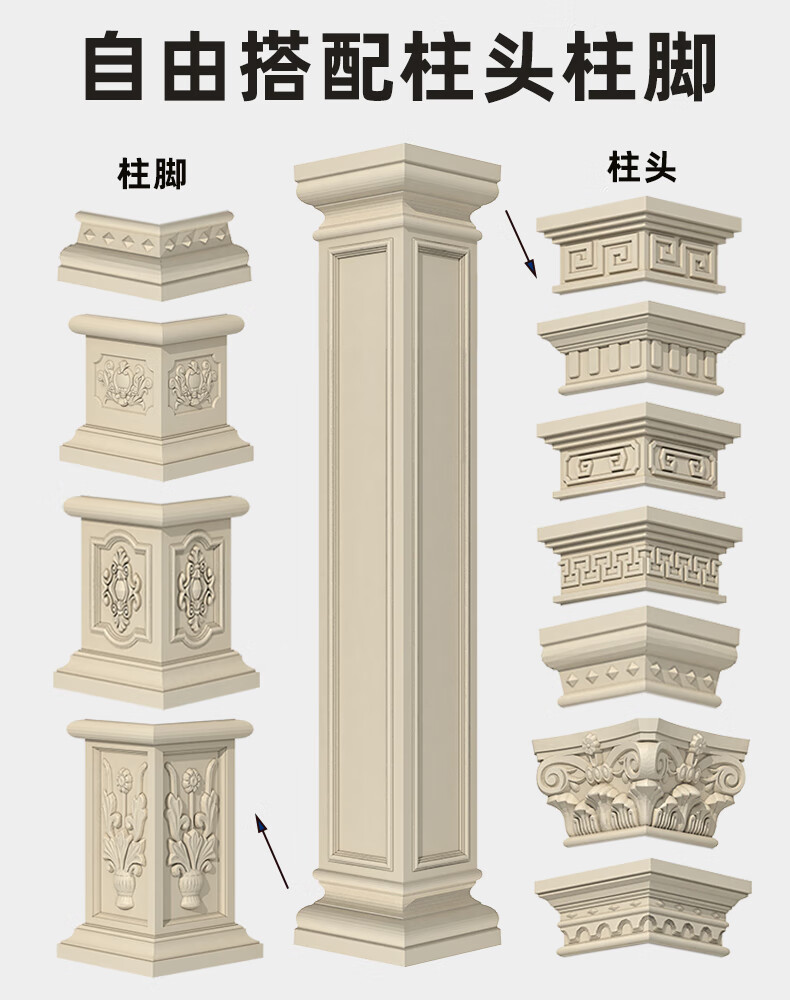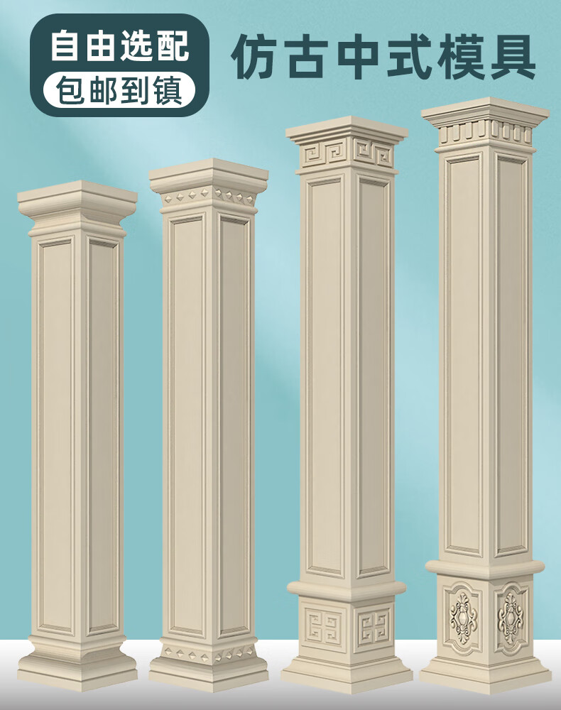 Chaosihui Roman square column mold European-style villa gate column model cement smooth square column building template complete set 50 cm wide 3.72 meters high lattice head + antique