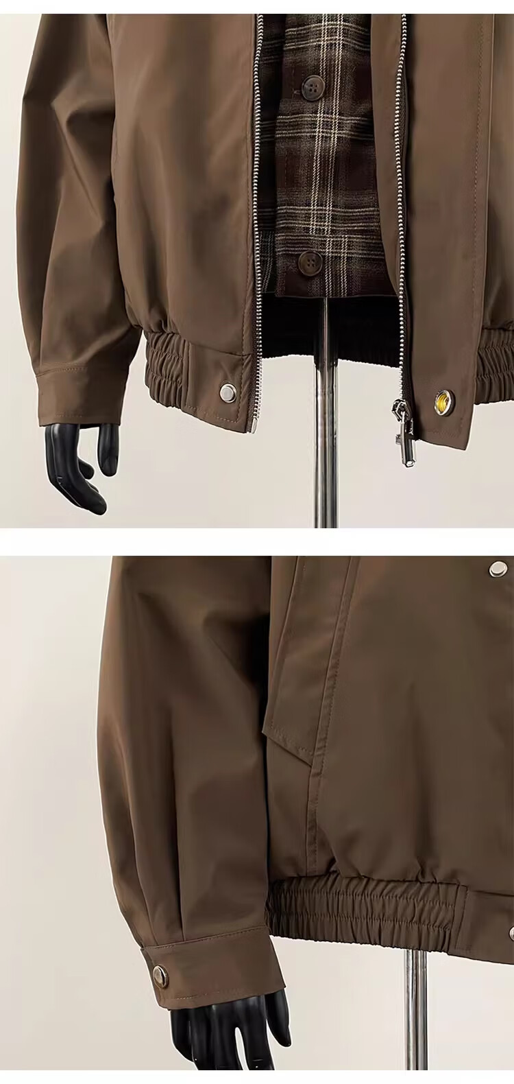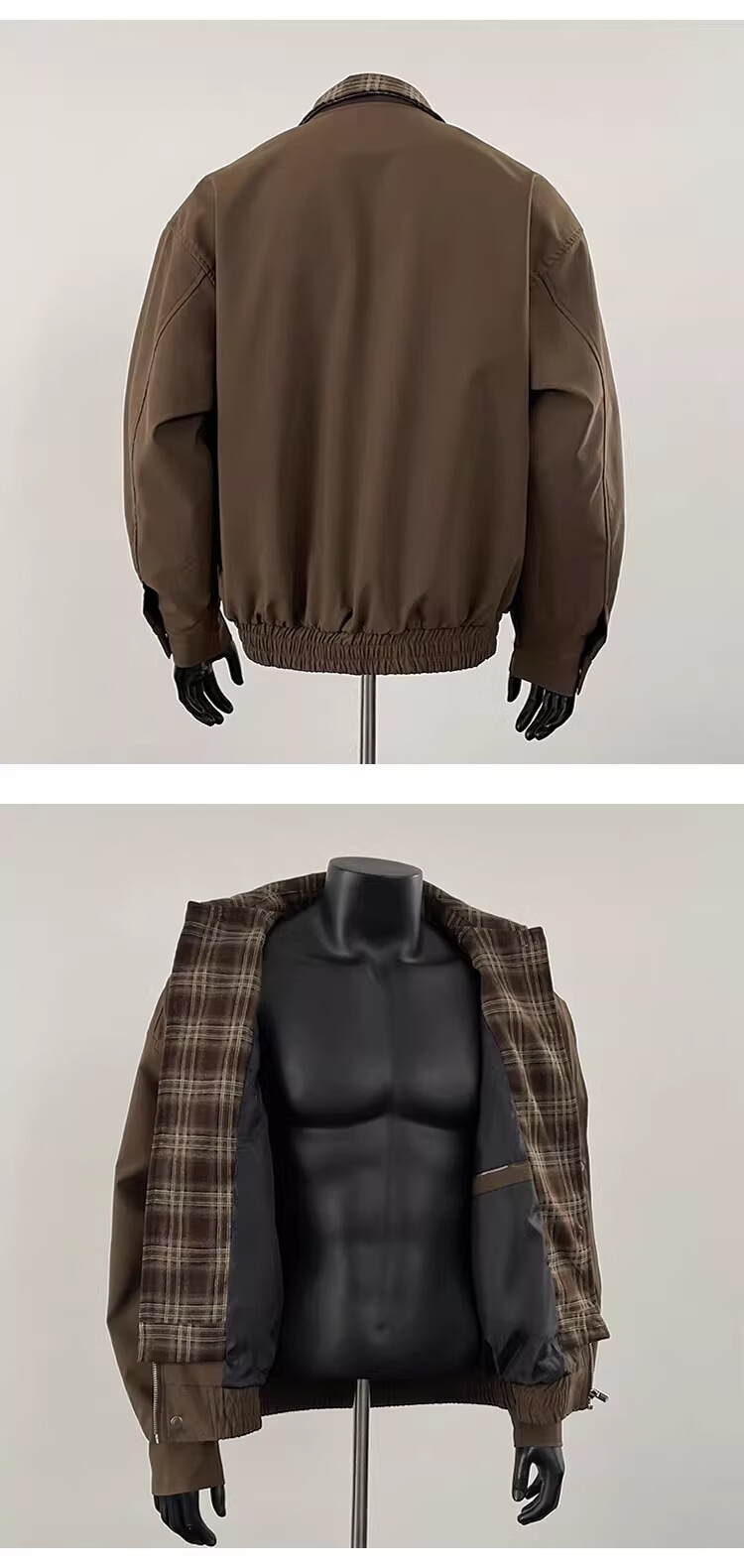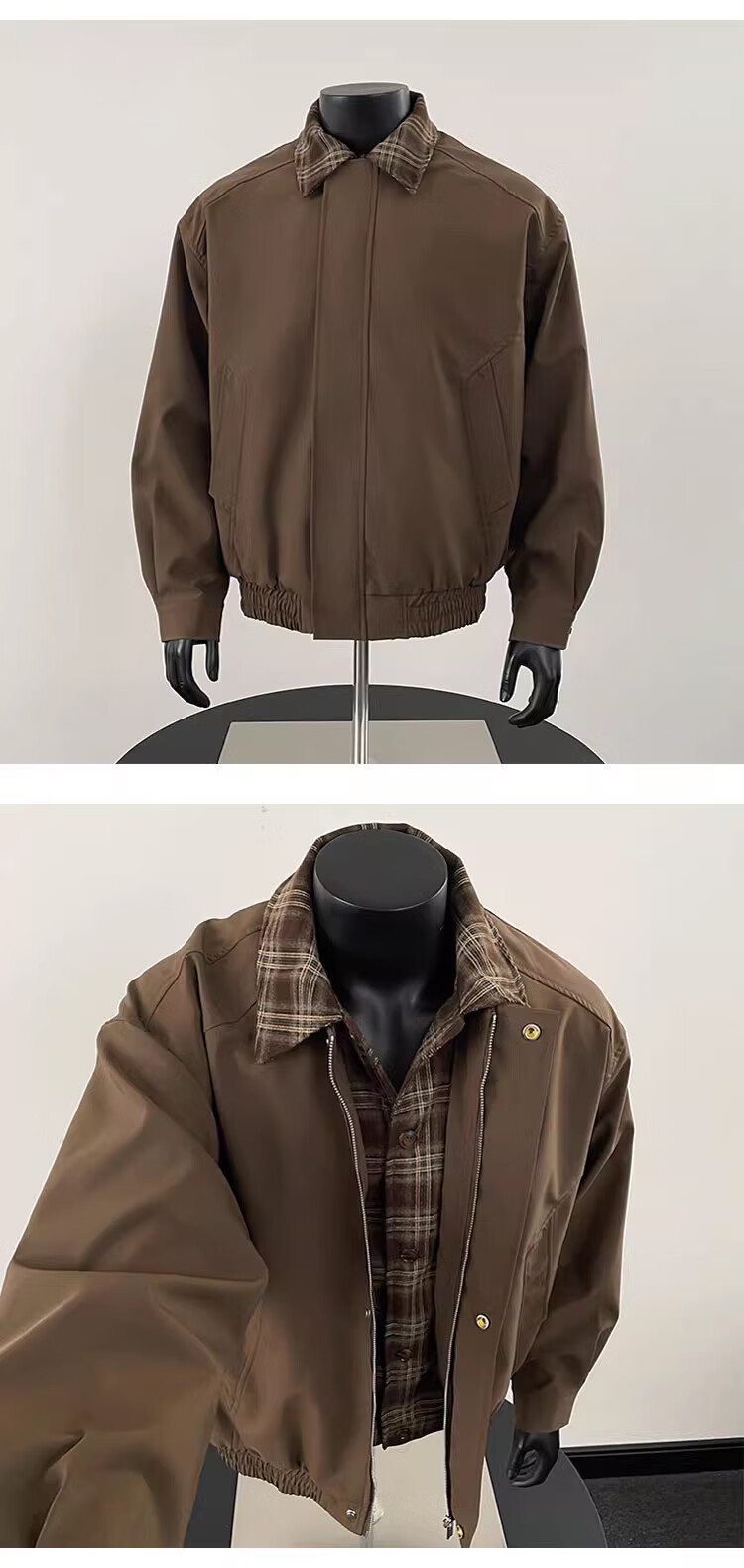 7 high-quality Maillard vintage jackets for men, autumn and winter quilted thickened fake two-piece jackets for men, outdoor lapel warm baseball uniforms NJN-AA32 Brown XL Recommended weight 125-140 Jin Jin equals 0.5 kg