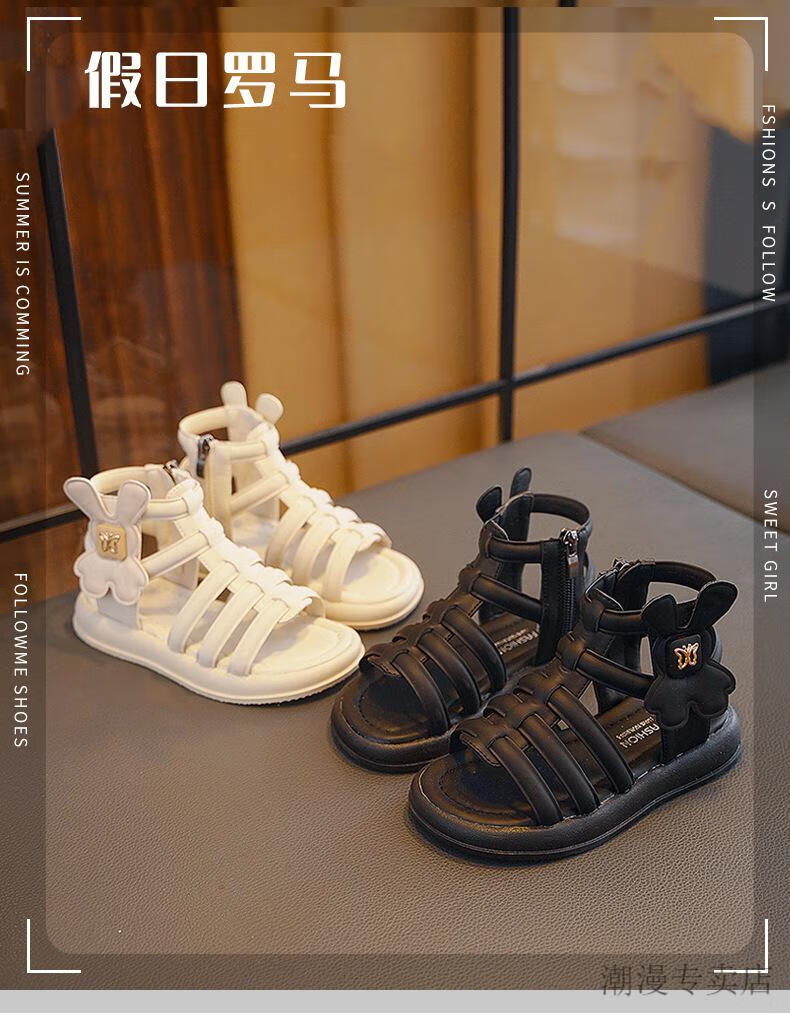G.duck girls' Roman sandals 2025 summer new style medium and large children's soft-soled student shoes children's non-slip beach shoes baby shoes off-white 26 inner length about 16cm