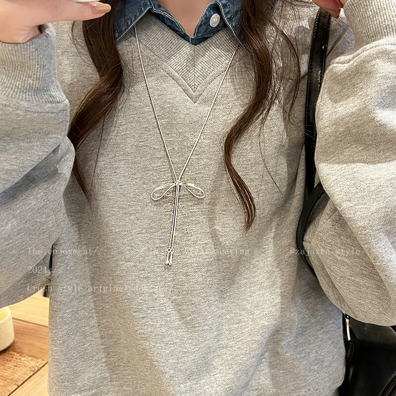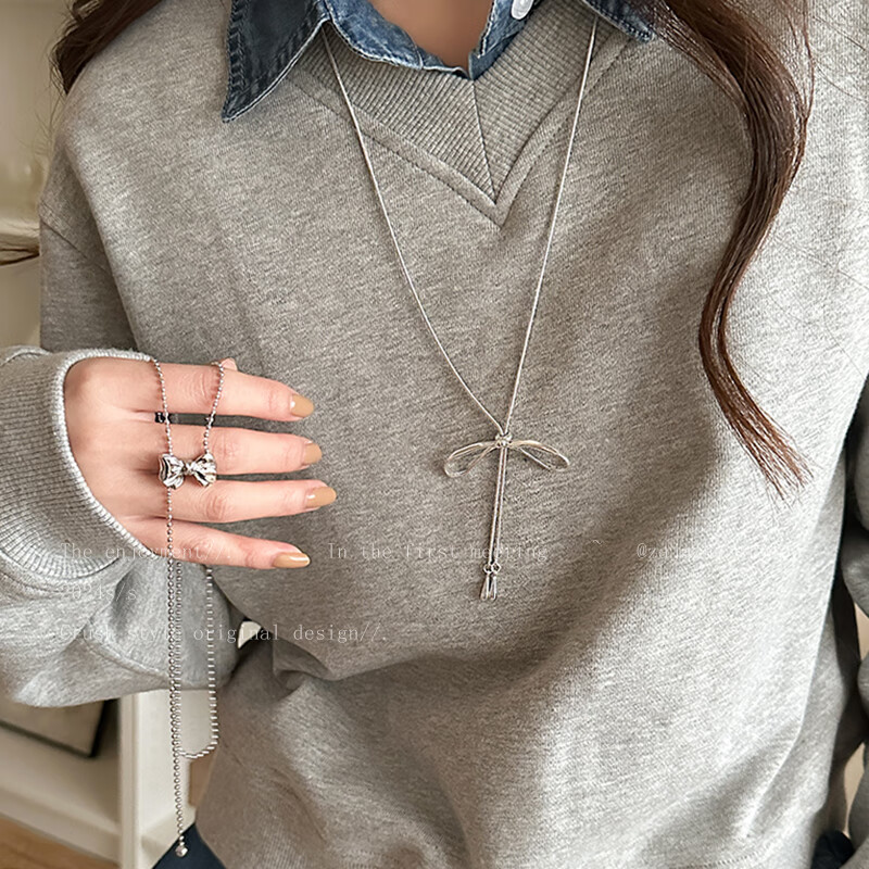 Jingkodi MIU bow metal necklace women's long sweater chain high sense light luxury niche sweatshirt accessories miu simple bow