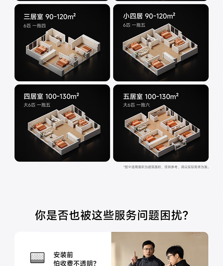 Xiaomi (MI) central air conditioner Pro 5 HP one for four, super first-class energy efficiency, whole house air management, smart air conditioner 125Wn-OC30/N2C1, one price all-inclusive, 5 HP first-class energy efficiency
